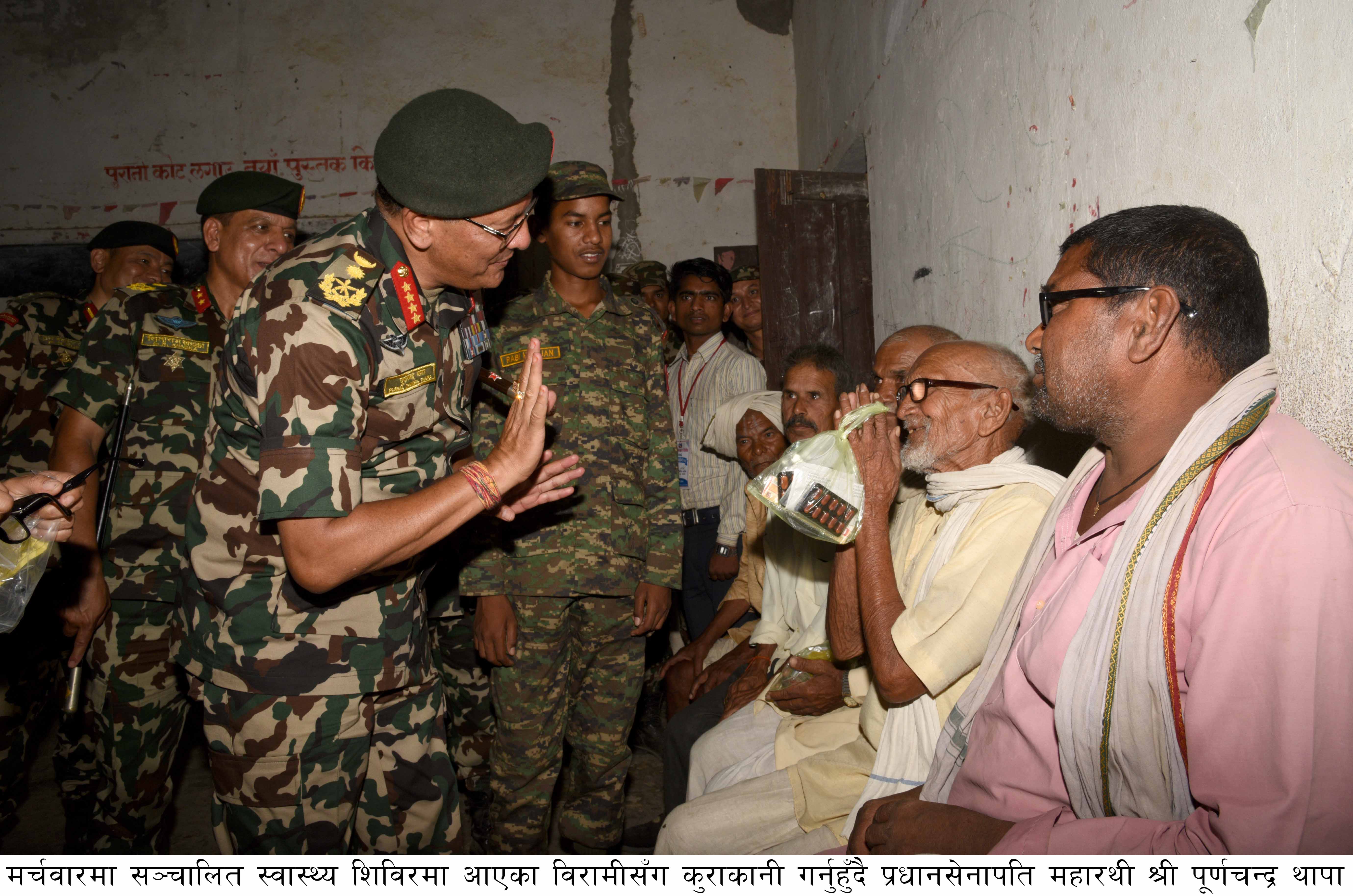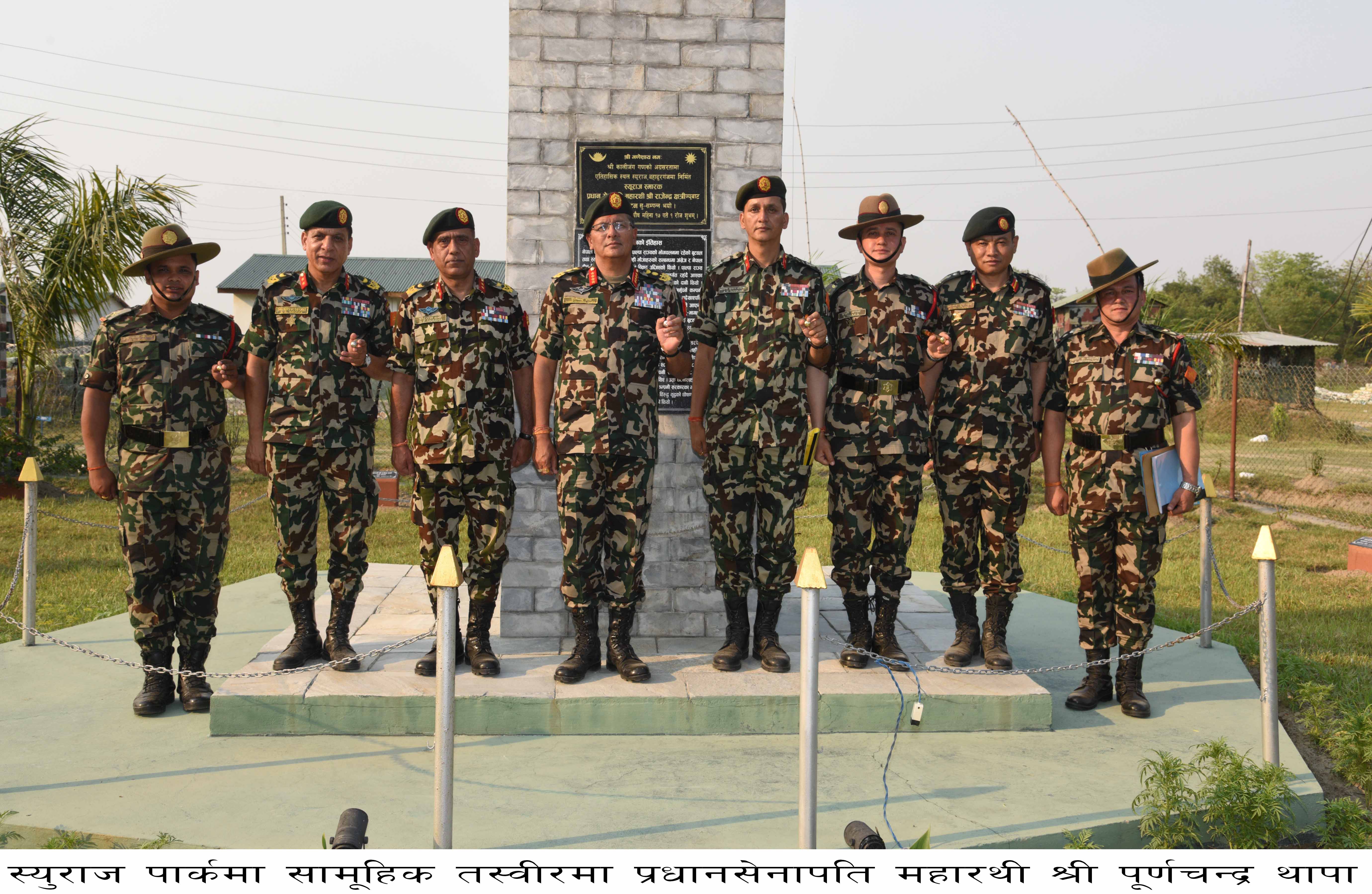 वैशाख ७ गते प्रधानसेनापति थापा रुपन्देही जिल्लास्थित जीतगढी किल्लामा प्रधानमन्त्री श्री केपी शर्मा ओलीद्वारा कर्णेल उजिरसिंह थापाको मूर्ति अनावरण एवं झण्डोत्तोलन कार्यक्रममा सहभागी भई हिजो शनिबार नेपाली सेनाद्वारा रुपन्देही जिल्लास्थित मध्य पश्चिम पृतना हेडक्वाटको जिम्मेवारी क्षेत्रमा पर्ने मर्चवारमा सञ्चालित स्वास्थ्य शिविरको निरिक्षण र कपिलबस्तुस्थित श्री नारायणदल गणको सुरक्षा बेश स्युराजमा स्युराज पार्कको अवलोकन तथा बृक्षारोपण समेत गरेका थिए ।