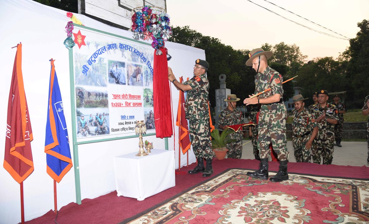 २। निरीक्षण भ्रमणको क्रममा प्रधानसेनापति थापाले उक्त गणको बस्तुस्थिति, तालिम, बन्दोबस्तीलगायत अन्य विविध पक्षबारे जानकारी हासिल गर्नुको साथै चितवन राष्ट्रिय निकुञ्जमा शुन्य चोरी शिकार अवधिको लगातार २ वर्ष सफलतापूर्वक सम्पन्न भएको अवसरमा शुन्य चोरी शिकारका 2X365+दिनको ब्यानर अनावरण गर्नु भई निकुञ्ज प्रशासन कार्यालय, अन्य संरक्षणमा आवद्ध संघ संस्था तथा स्थानीय जनतासँग समेत समन्वय र सहकार्य गर्दै प्रकृति संरक्षण कार्यमा सकलदर्जालाई अझ उत्प्रेरित भई उत्कृष्ट ढंगले कार्य सम्पादन गर्न निर्देशन दिएका थिए ।