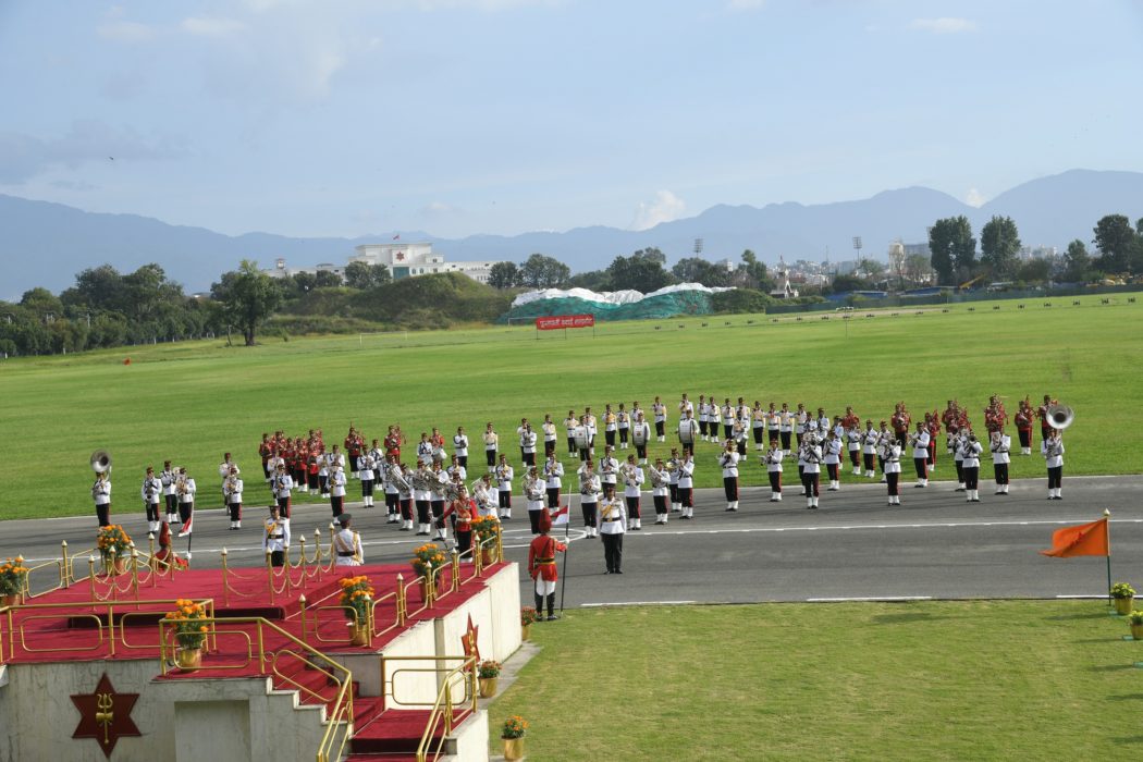 तत्पश्चात बढाइँ टोलीले राईफलबाट विभिन्न पाटाहरुबाट छिटो लहरे, एकठ्ठा र दुर्गायन्त्र आकृति समेत बनाई बढाइँ गर्नुका साथै तोपबाट पनि बढाइँ गरिएको थियो । उक्त कार्यक्रममा नेपाली सेनाको महिला गुल्म समेत सम्मिलित टोलीबाट मार्च पास प्रदर्शन गर्नुका साथै नेपाली सेनाको ब्यान्डबाट मालश्री धुन तथा दुर्गा भजनहरुको धुन समेत प्रस्तुत गरिएको थियो ।