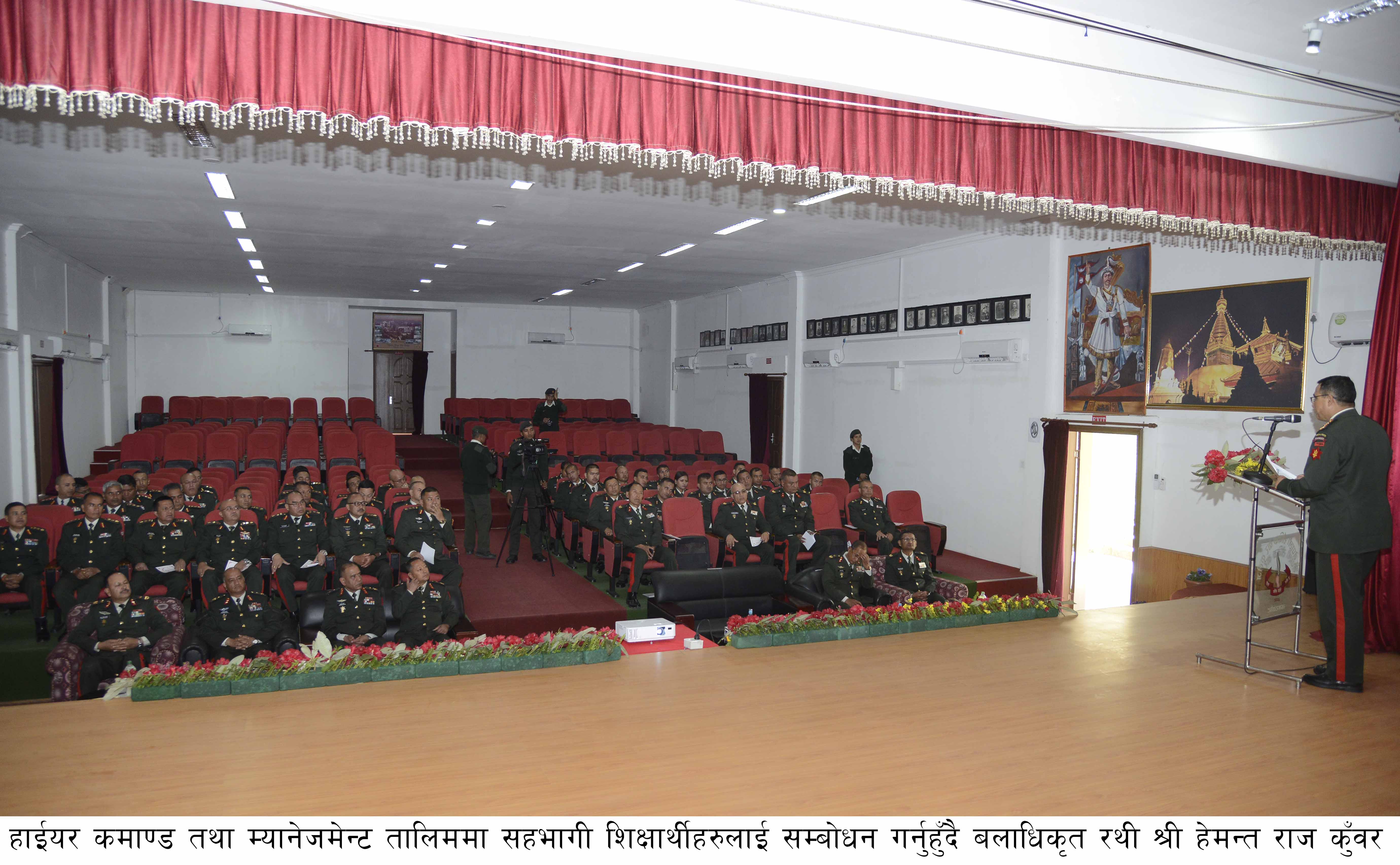 बलाधिकृत रथी कुंवरले कार्यक्रममा सम्बोधन गर्दै यस किसिमका तालिमले नेपाली सेनाको विभिन्न तहमा मात्र नभई बहुर्रा्ष्ट्रिय वातावरणमा समेत कमाण्ड तथा स्टाफ नियुक्तिमा काम गर्न सक्ने जेष्ठ अधिकृतहरु तयार पार्न सक्ने बताए ।