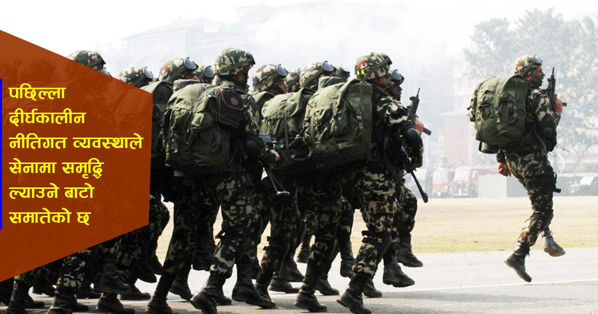 ओली सरकार बनेपछि सेनासँग सम्बन्धित एकपछि अर्काे दीर्घकालीन नीति बनिरहेका छन् । यसमा प्रधानसेनापति पूर्णचन्द्र थापाको योजना र क्षमता समेत प्रदर्शन भइरहेको छ । सेनाको सुझाव र सल्लाहका आधारमा सरकारले सेना सम्बन्धी नीति बनाउने गरेको छ । सेनाका सम्बन्धमा भइरहेका पछिल्ला दीर्घकालीन नीतिगत व्यवस्थाले सेनामा समृद्धि ल्याउने बाटो समातेको छ ।