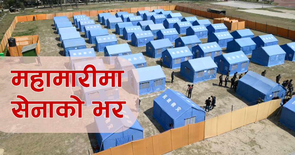 महाभूकम्पका बेला सेनाले निभाएको भूमिका होस् वा तराईको बाराका हावाहुरी पीडितको पुनःस्थापनाका लागि घर निर्माण गर्ने काम होस्, सबैमा सेनाको भूमिका स्मरणयोग्य छ । सेनामाथि अर्काे जिम्मेवारी थपिएको छ, कोरोना भाइरसको विश्वव्यापी महामारीसँगै ।
