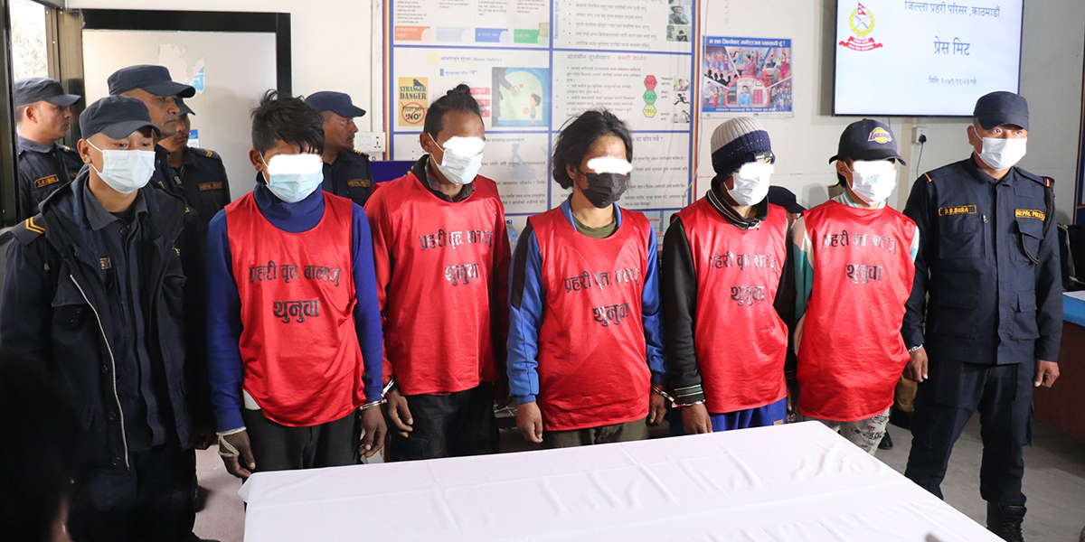 काठमाण्डु प्रहरीले उदयपुर बलमता गापा-२ घर भई काठमाण्डु ताराकेश्वर-१० मनमैजु बस्दै आएका विक्रम राई, नुवाकोट पञ्चकन्या गापा-३ घर भई काठमाण्डु टोखा नगरपालिका-३ बानियाँटार बस्दै आएका रामहरि भण्डारी, लमजुङ बेसीसहर-५ घर भई काठमाडौं ताराकेश्वर-१० बस्दै आएका विवेक श्रेष्ठलाई पक्राउ गरेको हो ।