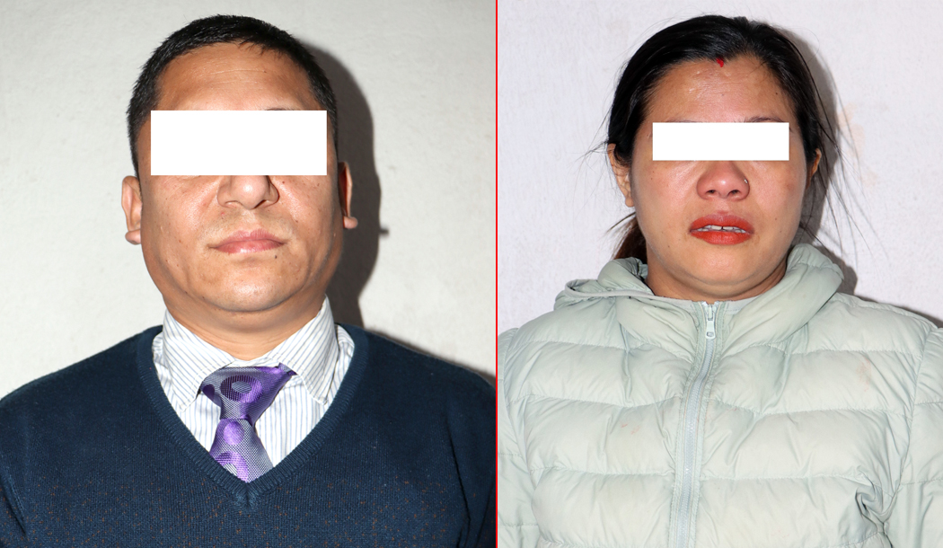 काठमाण्डु उपत्यका अपराध अनुसन्धान कार्यालय मिनभवनबाट खटिएको प्रहरी टोलीले नवलपरासी पश्चिमको बर्दघाट नगरपालिका–९ घर भई हाल काठमाण्डु महानगरपालिका–३१ बस्ने ४२ वर्षीय लक्ष्मण विश्वा र काभ्रेपलाञ्चोकको रोशी गाउँपालिका–१० की ४० वर्षीया सोफी मल्ललाई पक्राउ गरेको हो ।
