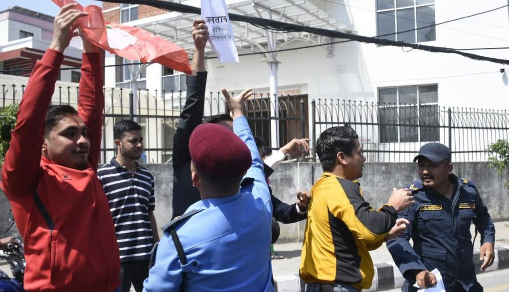 काठमाण्डु- नेपाली कांग्रेस निकट विद्यार्थी संगठन नेविसंघले सरकारविरुद्ध सिंहदरबार दक्षिण गेट अगाडि प्रदर्शन गरेको छ ।