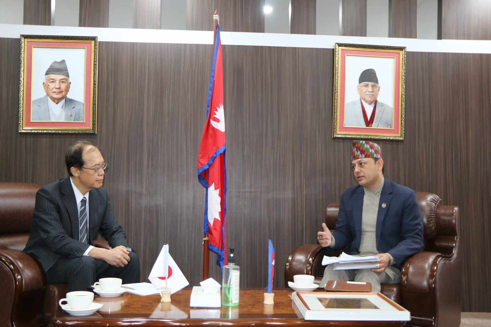 काठमाण्डु – श्रम, रोजगार तथा सामाजिक सुरक्षा मन्त्री डोलप्रसाद अर्याल र नेपालका लागि जापानिज राजदूत किकुता यूताबीच भेटवार्ता भएको छ ।