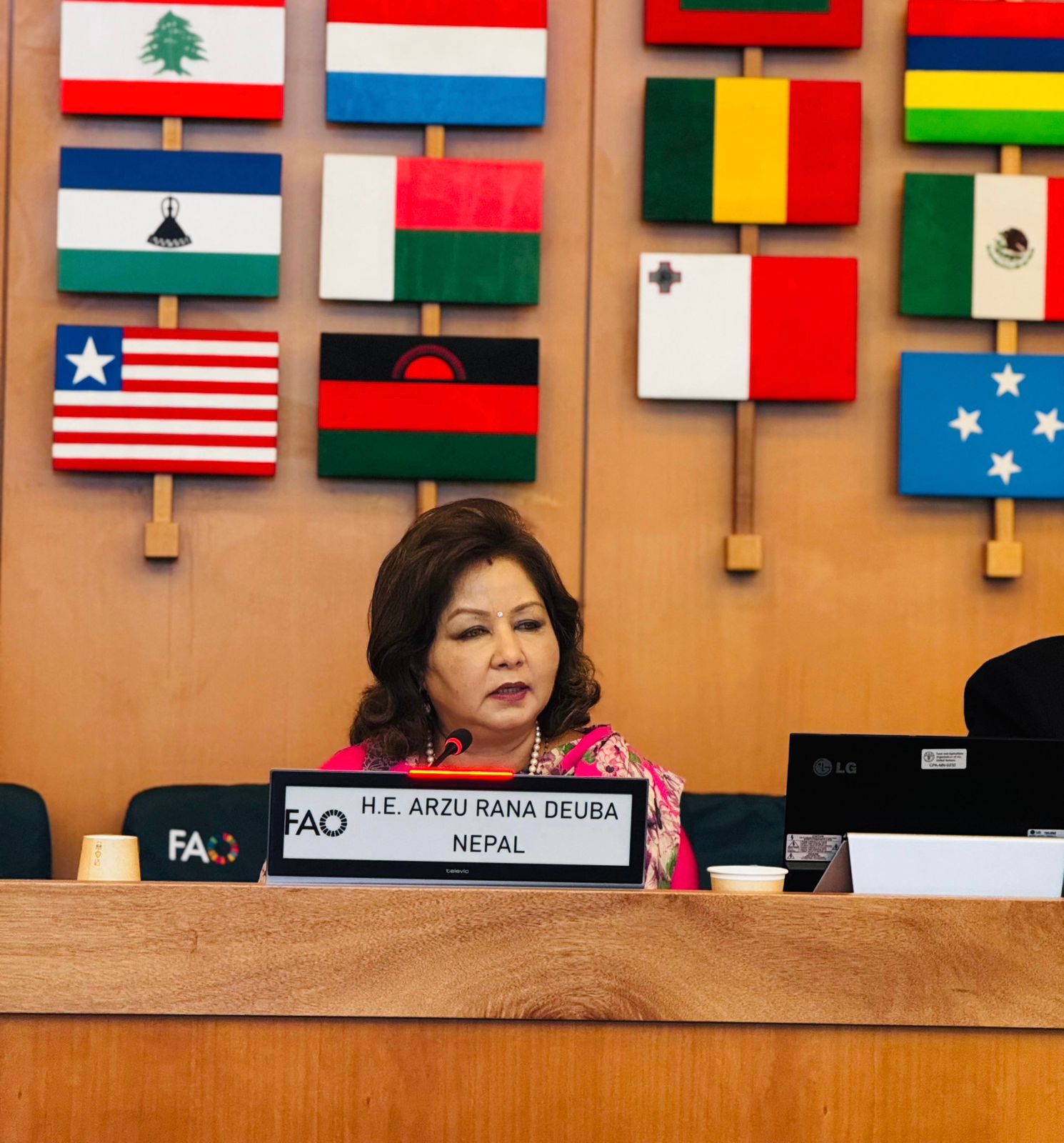 इटालीको रोममा आयोजित राष्ट्रसंघीय खाद्य तथा कृषि संगठनको मन्त्रीस्तरीय विशेष सत्रलाई आईतबार सम्बोधन गर्दै मन्त्री डा. राणाले नेपालको संविधानको मौलिक हकमा नै नागरिकको खाद्य सम्बन्धी अधिकारको व्यवस्था गरिएको जानकारी दिइन् ।