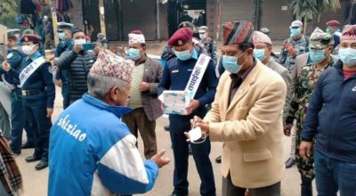 सुर्खेत – कर्णाली प्रदेशका मुख्यमन्त्री जीवनबहादुर शाही ‘तपाईंको मास्क खै ?’ भन्दै सडकमा निस्किएका छन् ।