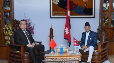 काठमाण्डु – नेकपा एमालेका अध्यक्ष केपी शर्मा ओली र चिनियाँ कम्युनिस्ट पार्टीका विदेश विभाग प्रमुख