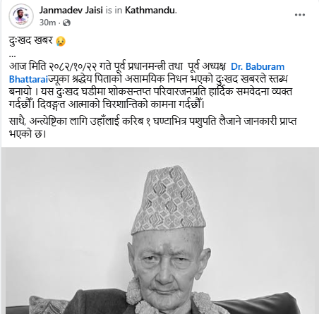स्वर्गीय भट्टराईको आजै पशुपति आर्यघाटमा अन्त्येष्टि गरिने प्रलोपा नेता जन्मदेव जैसीले जानकारी दिए ।