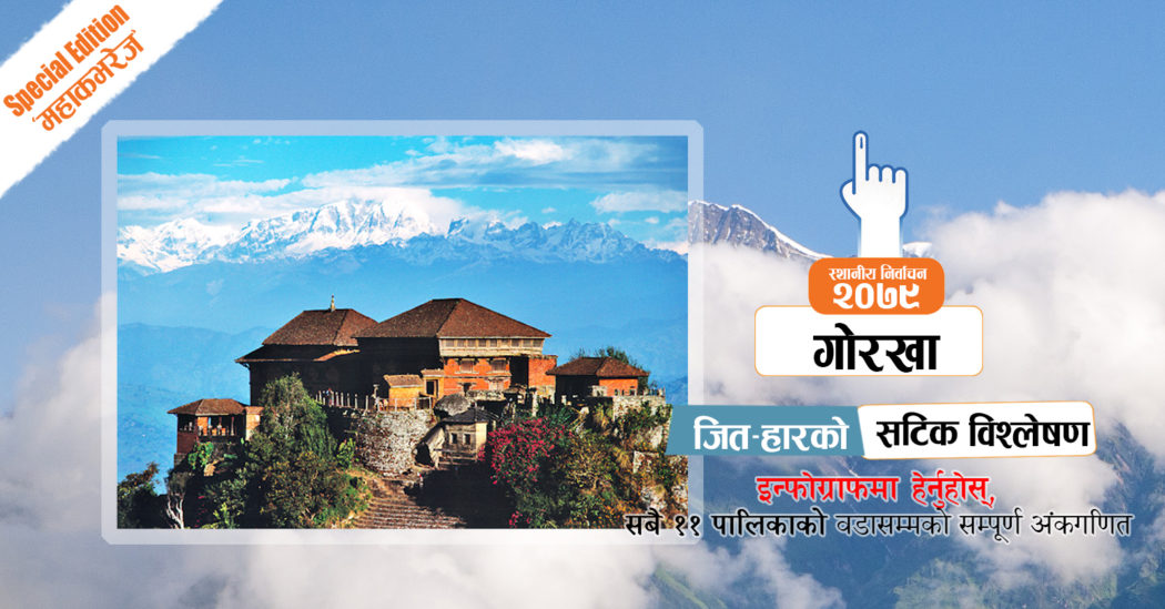 काठमाण्डु – पूर्वप्रधानमन्त्री बाबुराम भट्टराई र माओवादी केन्द्रका नेता नारायणकाजी श्रेष्ठको गृहजिल्ला हो गोरखा । हिमालसम्मै फैलिएको यो जिल्लामा ११ वटा स्थानीय तह छन् । तीमध्ये दुईवटा नगरपालिका हुन् । जिल्लामा कांग्रेस, एमाले, माओवादी र जनता समाजवादी पार्टीको प्रभाव छ ।