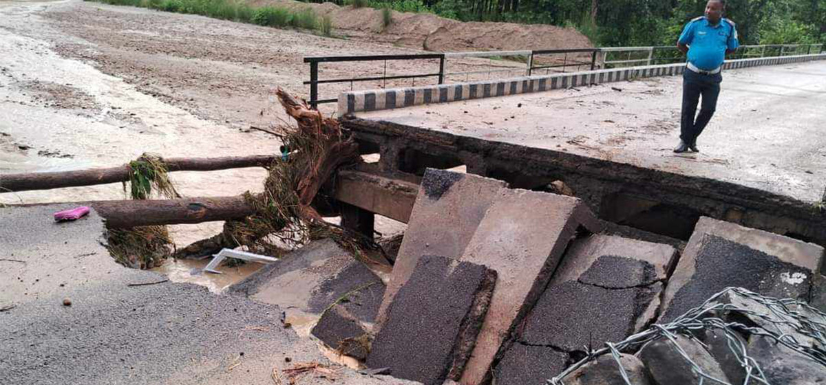 पुल बाढीले बगाएपछि अहिले सो राजमार्गमा यातायात ठप्प बनेको छ ।