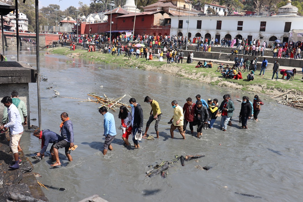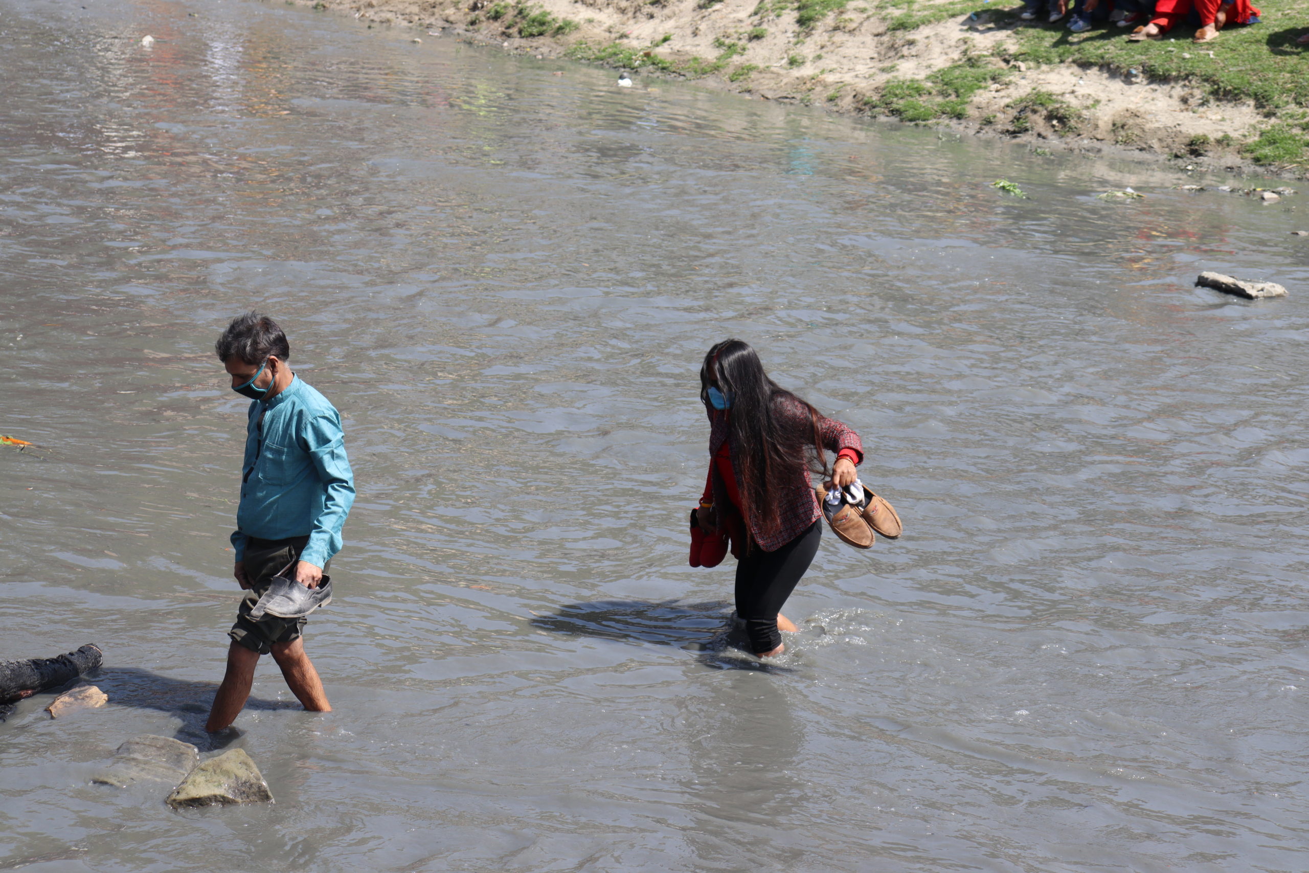 तर, पानी लेदो मिसिएको ढल मात्रै बगेको छ । बुधबार, बिहीबार र शुक्रबारका लागि भक्तजनहरुलाई नुहाउन भन्दै सुरुङमार्फत ल्याइएको मेलम्चीकाे खानेपानी बागमती नदीमा छोडिएको थियो । भक्तजनहरुले लेदो मिसिएको फोहोर पानीले कसरी नुहाउनु भन्दै प्रश्न गरेका छन् ।