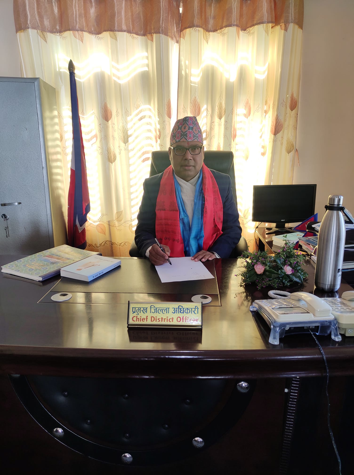 प्रमुख जिल्ला अधिकारीको रुपमा भर्खरै जिल्ला आएका अधिकारीले पहिलो पटक सरोकारवालाहरुसँग छलफल गरेका हुन् । सोमबार जिल्ला प्रशासन कार्यालयमा भएको छलफल कार्यक्रममा जिल्लाको विकास र अधिल्ला दिनहरुमा जिल्लाको विकासका लागी भएका प्रयासहरुको विषयमा छलफल भएको थियो ।