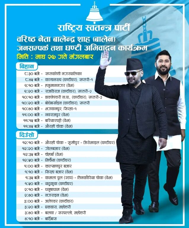बालेनको चुनावी दौड : आज सप्तरीदेखि बर्दिवाससम्म घरदैलो