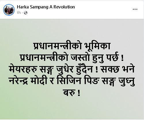 उनले लेखेका छन्, ‘प्रधानमन्त्रीको भूमिका प्रधानमन्त्रीको जस्तो हुनुपर्छ ! मेयरहरूसँग जुधेर हुँदैन ! सक्छ भने नरेन्द्र मोदी र सि जिनपिङसँग जुध्नु बरु !’