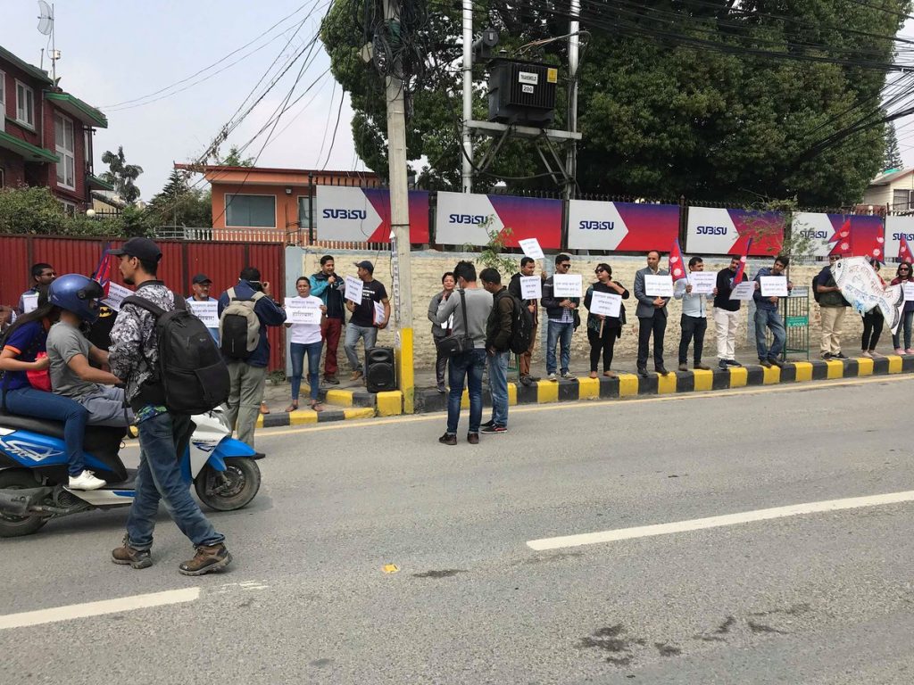 विवेकशीलका नेता–कार्यकर्ता हातमा ‘भ्रष्ट नेता भूमाफिया, भ्रष्ट व्यापारी भ्रष्ट प्रशासक, बालुवाटार बेच्नेले सिंहदरबार पनि बेच्लान् होशियार, भ्रष्टाचार कहिलेसम्म जनता सचेत नभएसम्म’ लेखिएको प्ले कार्ड बोकेर प्रदर्शन गरेका हुन् ।