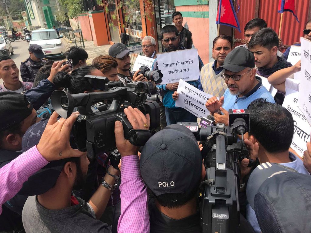 बालुवाटारभित्रको सरकारी जग्गा नेपाल कम्युनिस्ट पार्टीका महासचिव विष्णु पौडेलको छोरा नवीनको नाममा आएको देखिएको थियो । पार्टीको अभियान विभागले भ्रष्टाचारको विरोधमा देशव्यापी दबाब सिर्जना गर्ने कार्यक्रम अन्तर्गत प्रधानमन्त्री निवास बाहिर प्रदर्शन गरेको विवेकशील साझा पार्टीका प्रवक्ता सूर्यराज आचार्यले बताए ।