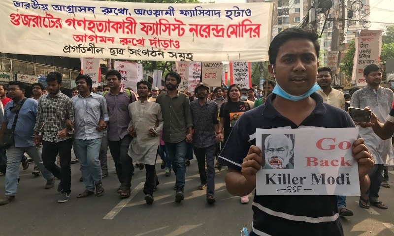 त्यसपछि झण्डै २०० जना विद्यार्थीहरु ढाका विश्वविद्यालय क्याम्पसबाट सडकमा गएका थिए । उनीहरूले मोदीलाई ‘गुजरातका कसाई’ भन्दै नारा लगाए ।