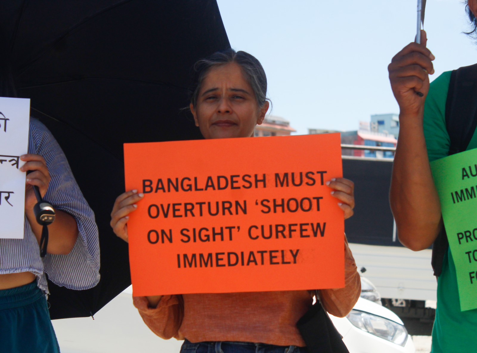 बङ्गलादेशमा चलिरहेको कोटा विरोधी आन्दोलनका क्रममा विद्यार्थीहरूप्रति गरिएको दमन र हिंसाको विरुद्धमा प्रदर्शन गरिएको आयोजकको भनाइ छ ।