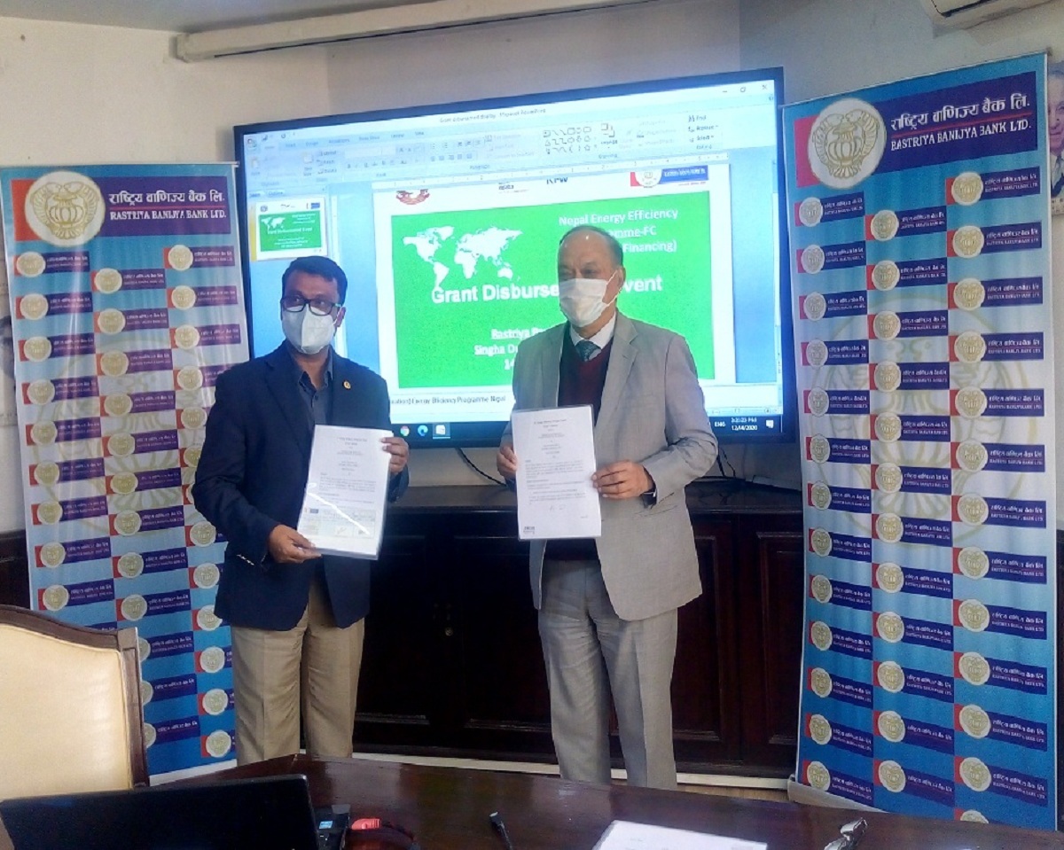 काठमाण्डु – राष्ट्रिय वाणिज्य बैंकद्धारा जर्मन सरकारबाट KFW बैंक मार्फत प्राप्त अनुदान सहयोगमा संचालित ‘Energy Efficiency Program Nepal’ को अनुदान सहयोग कार्यक्रम अन्र्तगत रकम हस्तान्तरण गरेको छ ।