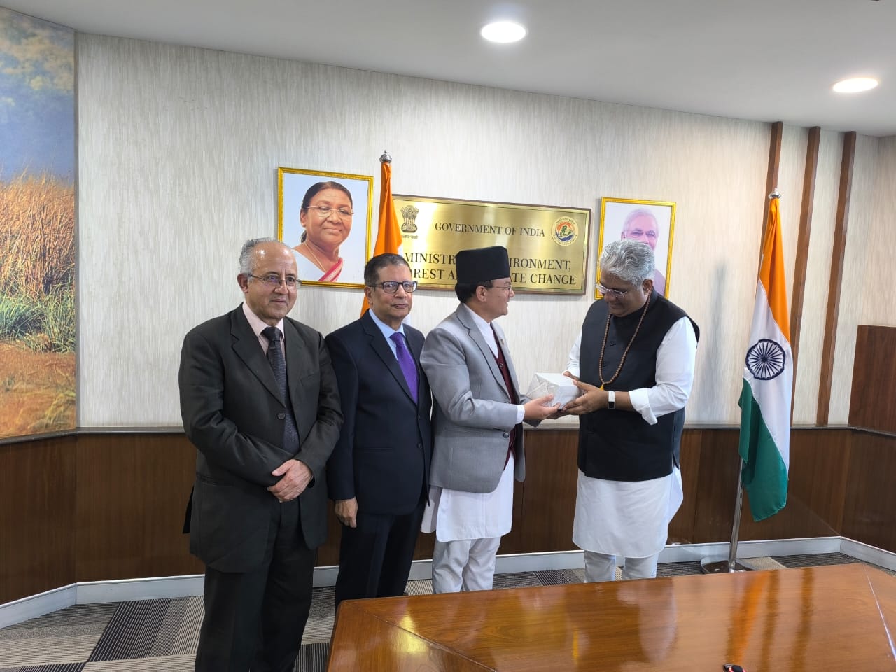 काठमाण्डु– भारत भ्रमणमा रहनुभएका वन तथा वातावरण मन्त्री ऐनबहादुर शाही ठकुरी र भारतका वातावरण, वन तथा जलवायु परिवर्तन मन्त्री भुपेन्द्र यादवबीच भेटवार्ता भएको छ ।