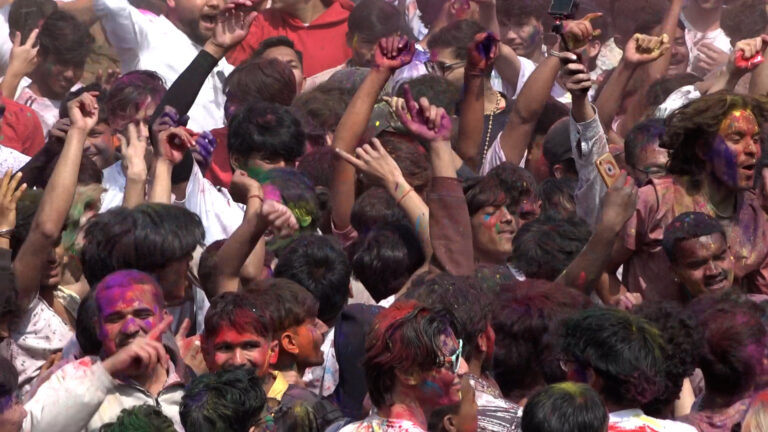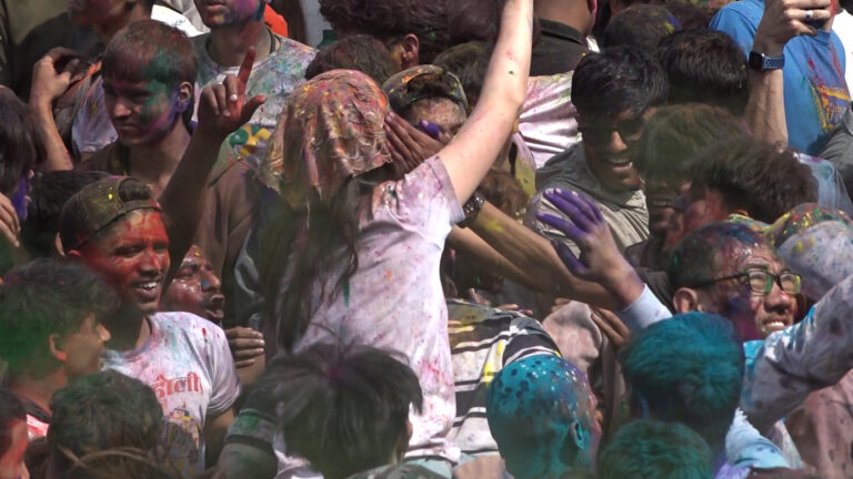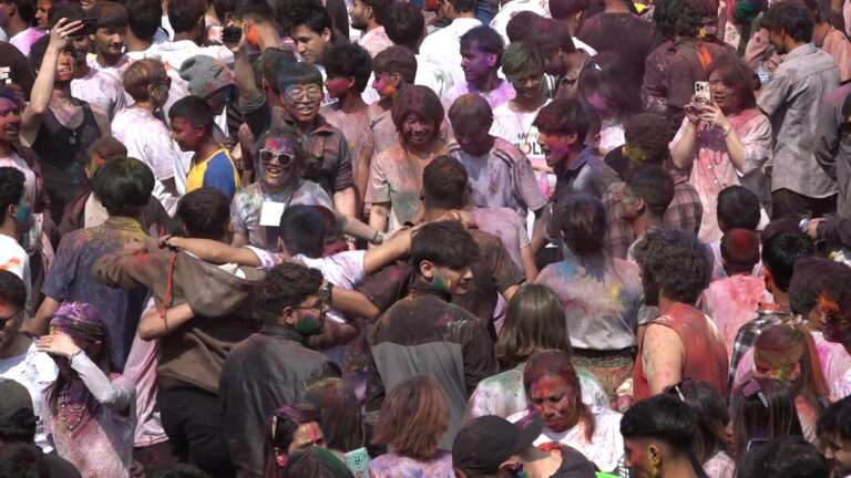 विशेषगरी युवायुवतीहरू समूह–समूहमा भेला भएर रंग खेल्दै, नाचगान गर्दै र संगीतमा रमाउँदै होलीको उत्सव मनाइरहेका छन् । हातमा अबिर र पानीका रंग लिएर उनीहरूले एक–अर्कालाई रंग्याउँदै वसन्तपुर क्षेत्रलाई उत्सवमय बनाएका छन् ।