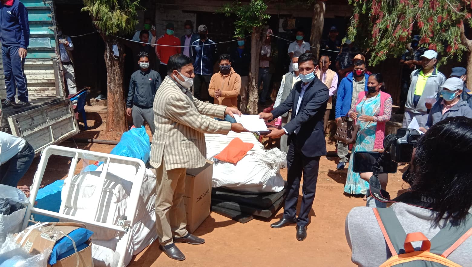 मन्त्री बस्नेतका स्वकिय सचिव मुक्तिराज वस्नेतले प्रमख जिल्ला अधिकारी जनकराज पन्तमार्फत मंगलवार स्वास्थ्य सामाग्री हस्तान्तरण गरेका हुन् ।