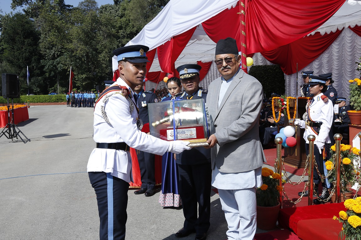 साथै उनले सर्वद्वितीय प्रशिक्षार्थी प्रहरी निरीक्षक आदर्श गिरी, सर्वतृतीय प्रशिक्षार्थी प्रहरी निरीक्षक आशिस पोखरेल, अध्ययन प्रथम प्रशिक्षार्थी प्रहरी निरीक्षक गोविन्द प्रसाद भण्डारी, कवाज प्रथम प्रशिक्षार्थी प्रहरी निरीक्षक अभय लामा, मस्केट्री तथा चाँदमारी प्रथम प्रशिक्षार्थी प्रहरी निरीक्षक पूर्ण बहादुर केसी र शारीरिक व्यायाम र प्रहरी युक्ति तथा कारवाही प्रथम प्रशिक्षार्थी प्रहरी निरीक्षक सनम मल्ललाई पुरस्कार प्रदान गर्नुका साथै उत्कृष्ट प्रशिक्षकहरूलाई समेत पुरस्कार प्रदान गरे ।