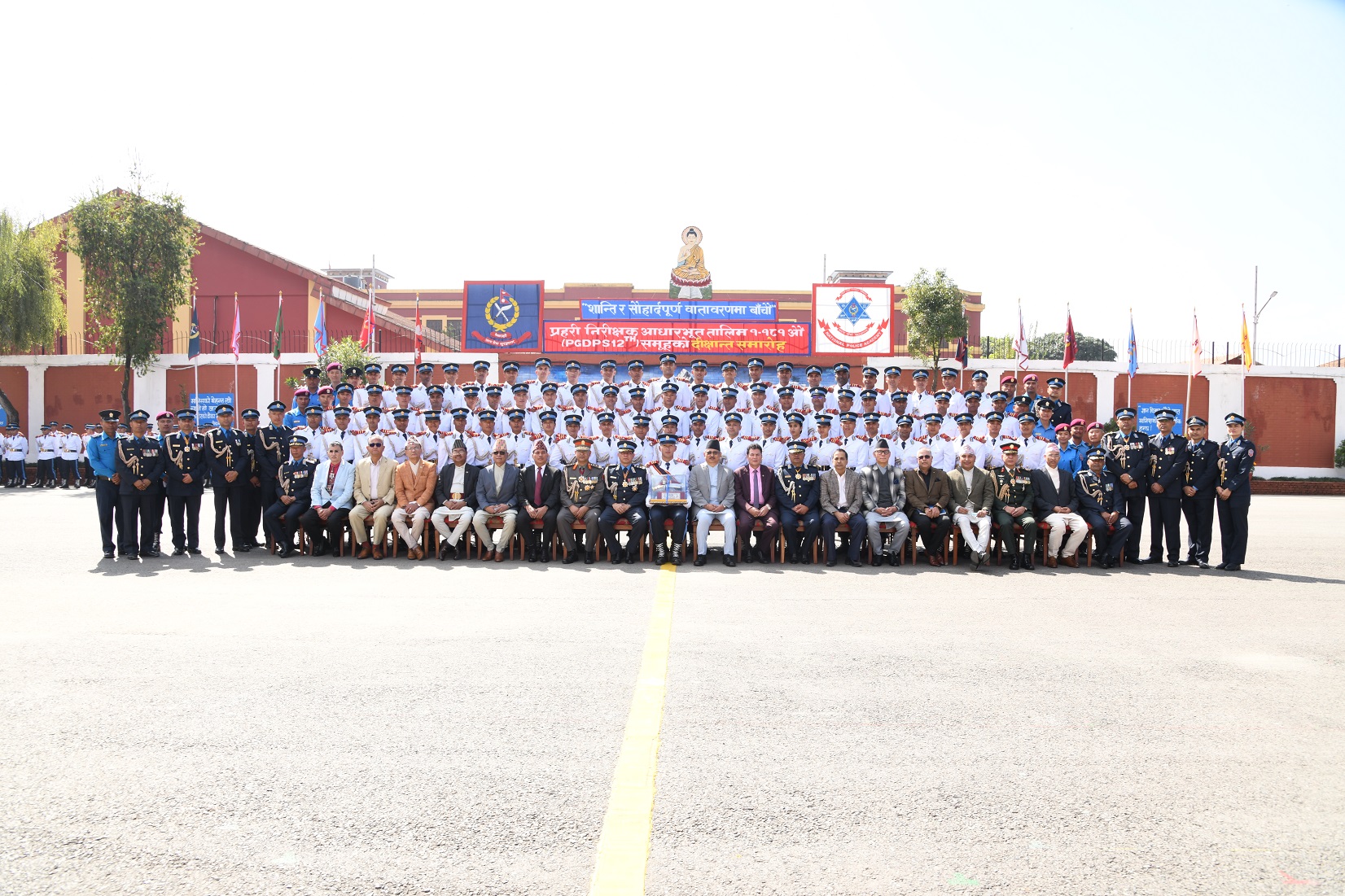 काठमाण्डु – नेपाल प्रहरीका १४६ जना प्रहरी निरीक्षक (इन्सपेक्टर) पास आउट भएका छन् । राष्ट्रिय प्रहरी प्रशिक्षण प्रतिष्ठानले आइतबार महाराजगंजमा एक विशेष समारोह आयोजना गर्दै प्रहरीमा तालिमरत १ सय ४६ जना इन्स्पेक्टरलाई दीक्षित गरेको हो ।