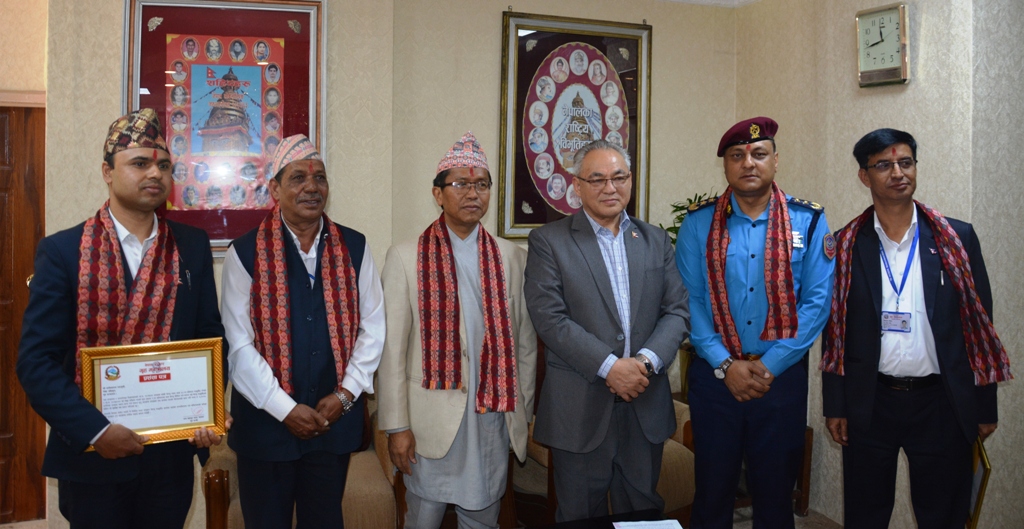 काठमाडौँ – बेरुजु फछ्र्यौटमा उत्कृष्ट काम गरेको भन्दै गृह मन्त्रालयमा सचिव प्रेमकुमार राई, नेपाल प्रहरीका महानिरीक्षक (आइजीपी) सर्वेन्द्र खनाललाई पुरस्कृत गरीएको छ ।  गृहमन्त्रालयमा बिहीबार एक कार्यक्रमकाबीच गृहमन्त्री रामबहादुर थापा‘बादल’ले उनीहरुलाई नगद तथा प्रशंशापत्र प्रदान गरेका हुन् ।