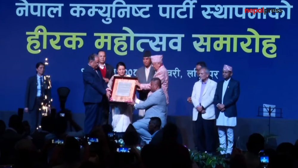 मंगलवार नेकपा स्थापनाको ७५ वर्ष पूरा भएको अवसरमा ललितपुरस्थित गोदावरीको सनराईज हलमा आयोजित हीरक महोत्सवको विशेष समारोहमा भण्डारीलाई सम्मान गरिएको हो ।
