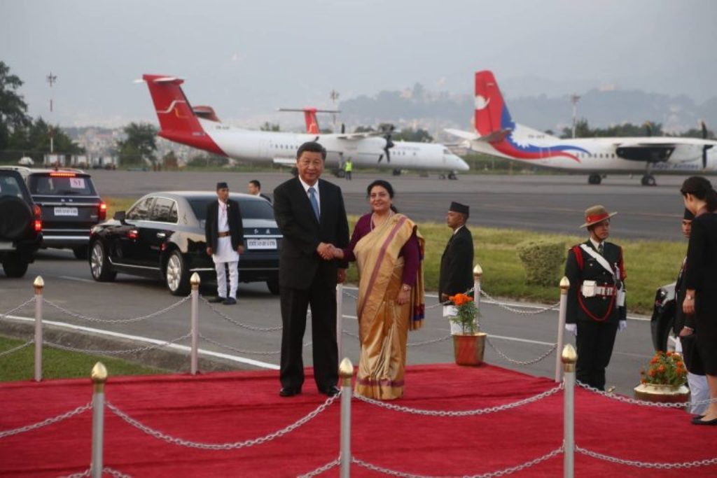 काठमाडौं : राष्ट्रपति विद्यादेवी भण्डारी र प्रधानमन्त्री केपीशर्मा ओलीले चिनियाँ राष्ट्रपति सी चिनफिङलाई त्रिभुवन अन्तराष्ट्रिय विमानस्थलमा स्वागत गरेका छन् । दुई दिने राजकीय भ्रमणका लागि आएका सीलाई राष्ट्रपति भण्डारीले विमानस्थल नजिकै गएर स्वागत गरेकी हुन् ।