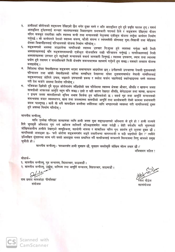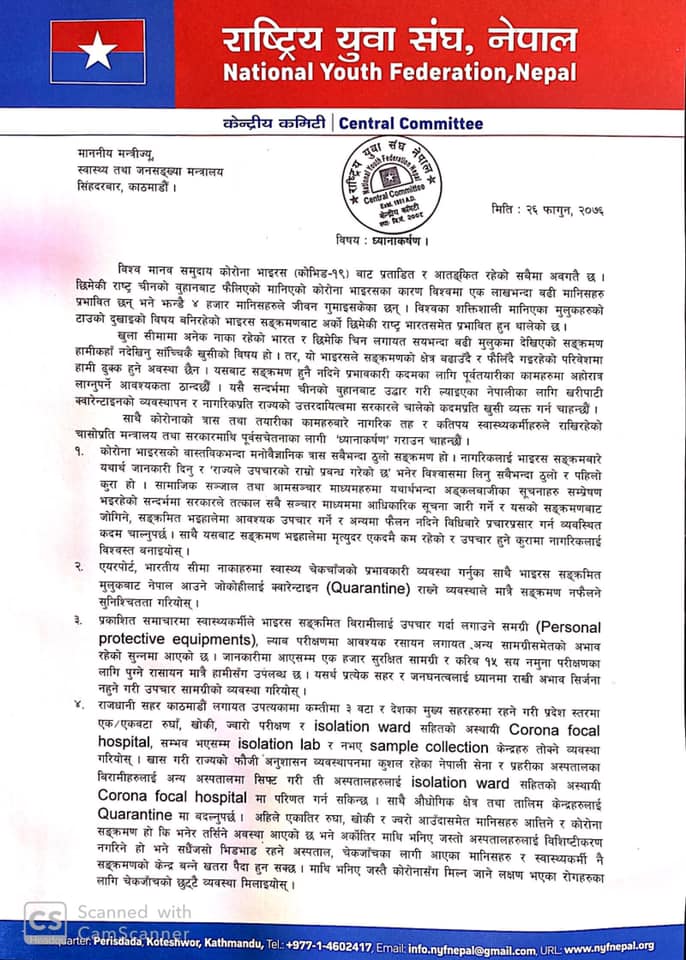 युवा संघले सामाजिक सञ्जाल र विभिन्न आम सञ्चार माध्यमबाट अड्कबाजीमा सूचना सम्प्रेसण भइरहेको सन्दर्भमा आधिकारिक सूचना जारी गर्ने व्यवस्था गर्न सरकारको ध्यानाकर्षण गराएको छ ।