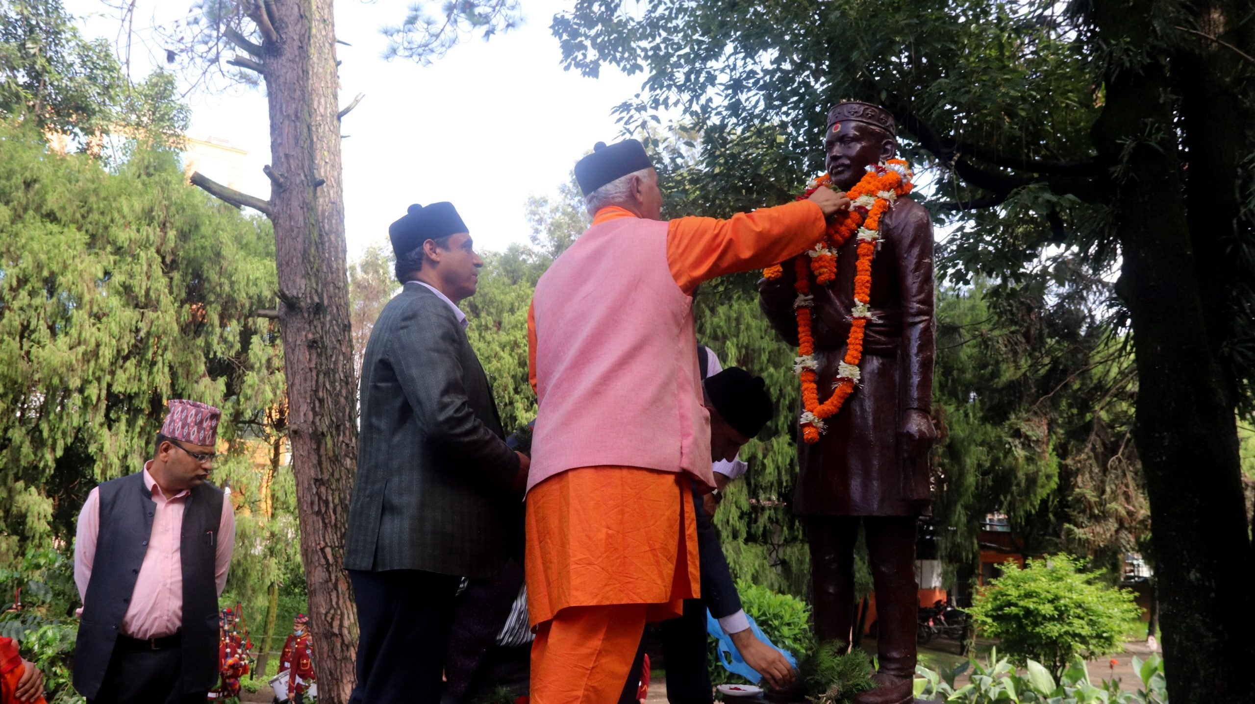 भानुभक्तको सालिकमा माल्यार्पण गर्दै पूर्वउपकुलपति उप्रेतीले नेपाली भाषाको विकास गरी नेपालीलाई एकताबद्ध गर्न आदिकविको ठूलो योगदान रहेको बताए।