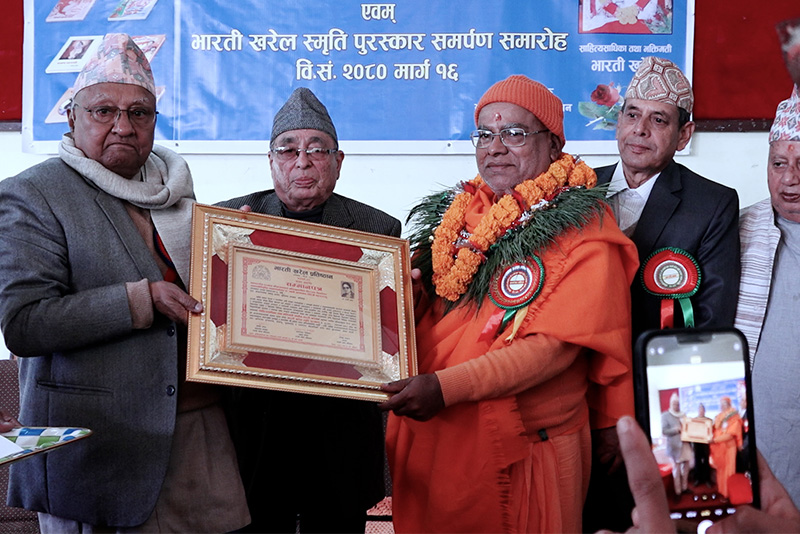 काठमाण्डु- भारती खरेल प्रतिष्ठानले अध्यात्मसाधनामा योगदान गरेबापत डा स्वामी आत्मानन्द गिरि गलेश्वरधाम आश्रम देवघाटलाई यस वर्षको भारती खरेल पुरस्कार प्रदान गरेको छ।