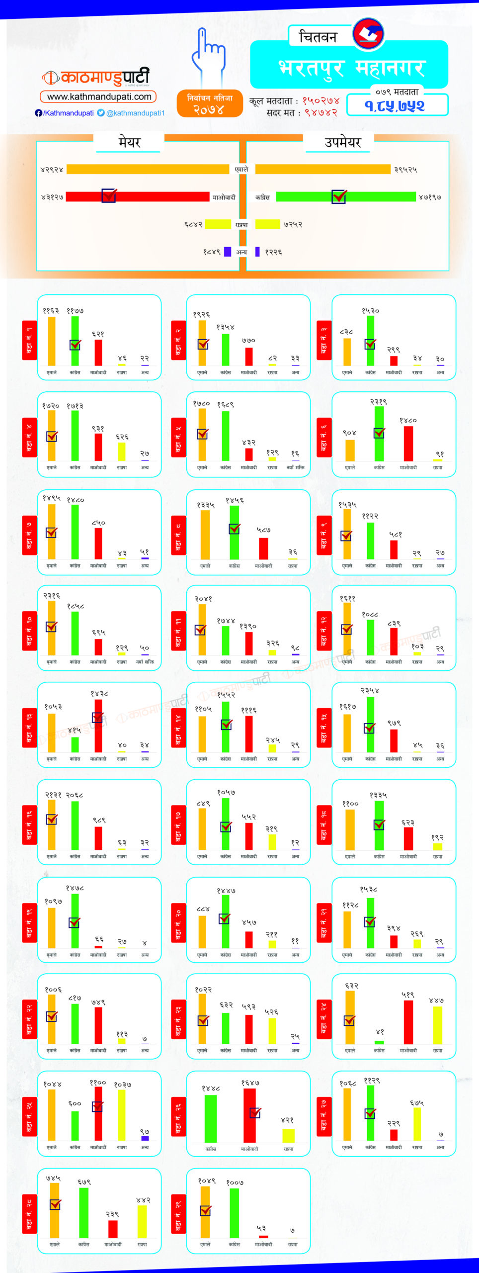 भरतपुर महानगरमा पनि हारजितको मुख्य फ्याक्टर दलहरूको समीकरण नै हो । दलहरूबीच हुने गठबन्धनले नै यहाँको परिणाम निर्धारण गर्न सक्छ । प्रचण्ड रेनुलाई पुनः मेयर बनाउने कसरतमा देखिन्छन् । त्यसका लागि उनले देउवालाई फकाउने प्रयास गरिरहेका छन् । तर, कांग्रेसका स्थानीय नेता भने यसपटक कुनै हालतमा पनि मेयर नछाड्ने अडानमा देखिन्छन् । भरतपुरमा अर्को मुख्य कुरा दल विभाजनको असर पनि हो । यसले एमालेलाई बढी प्रभाव पर्ने देखिन्छ । किनकि यहाँ विभाजनको असर अन्यत्रभन्दा अलि बढी छ ।