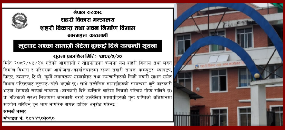 चोरी, लुटपाट भएका सामान फिर्ता गर्न भवन निर्माण विभागको अनुरोध