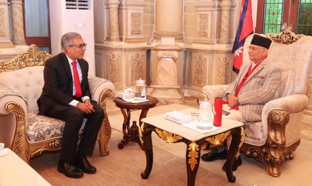 काठमाण्डु – प्रधानमन्त्री केपी शर्मा ओलीसँग नेपालका लागि बंगलादेशका राजदूत सलाहुद्दिन नोमन चौधरीले आज बिदाइ भेट गरेका छन् । प्रधानमन्त्री तथा मन्त्रिपरिषद्को कार्यालय, सिंहदरबारमा भएको भेटमा प्रधानमन्त्री ओलीले आपसी सम्बन्धमा योगदान दिएकामा राजदूत चौधरीलाई धन्यवाद दिए ।