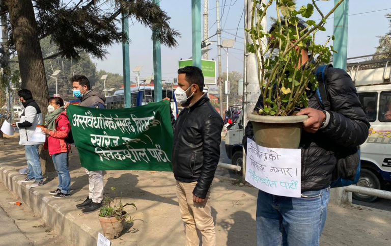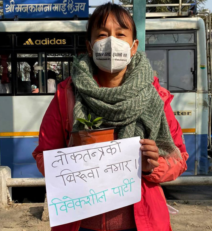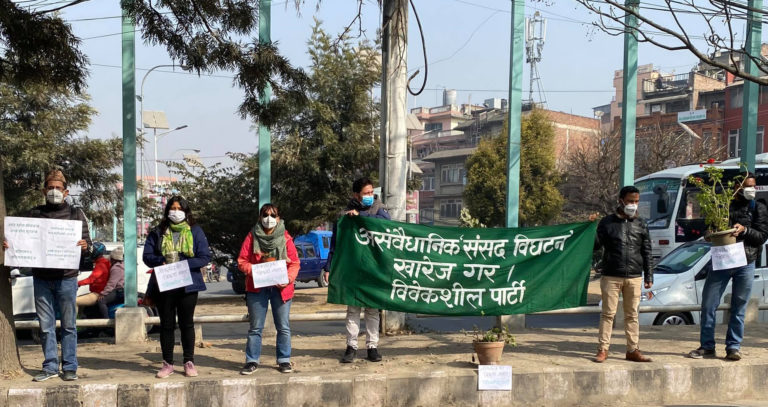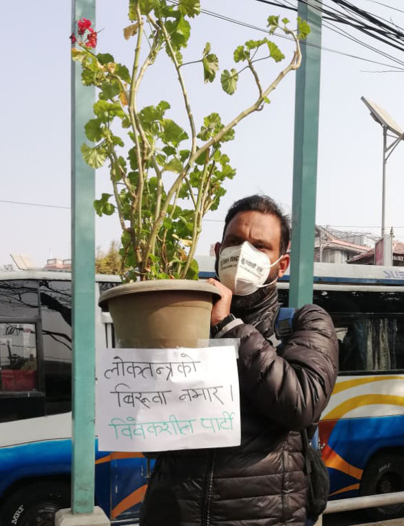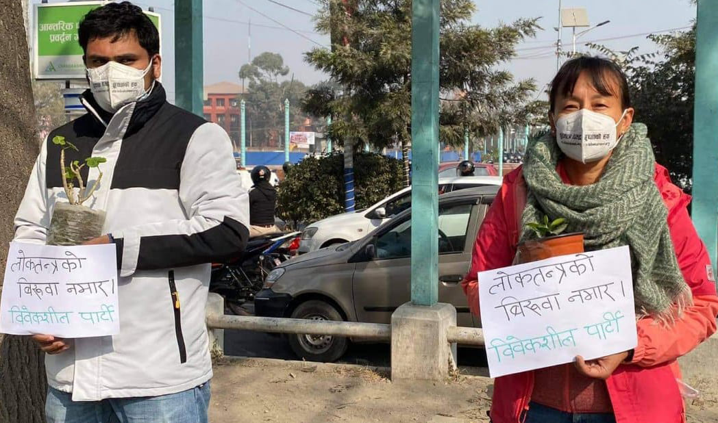 काठमाण्डु – विवेकशील पार्टीले संसद विघटनको विरोधमा माइतीघर मण्डलामा प्रर्दशन गरेको छ । ‘लोकतन्त्रको बिरुवा नमार !’ भन्ने नाराका साथ उक्त पार्टीले संसद विघटनको असंवैधानिक कदमविरुद्ध प्रदर्शन गरेको हो ।
