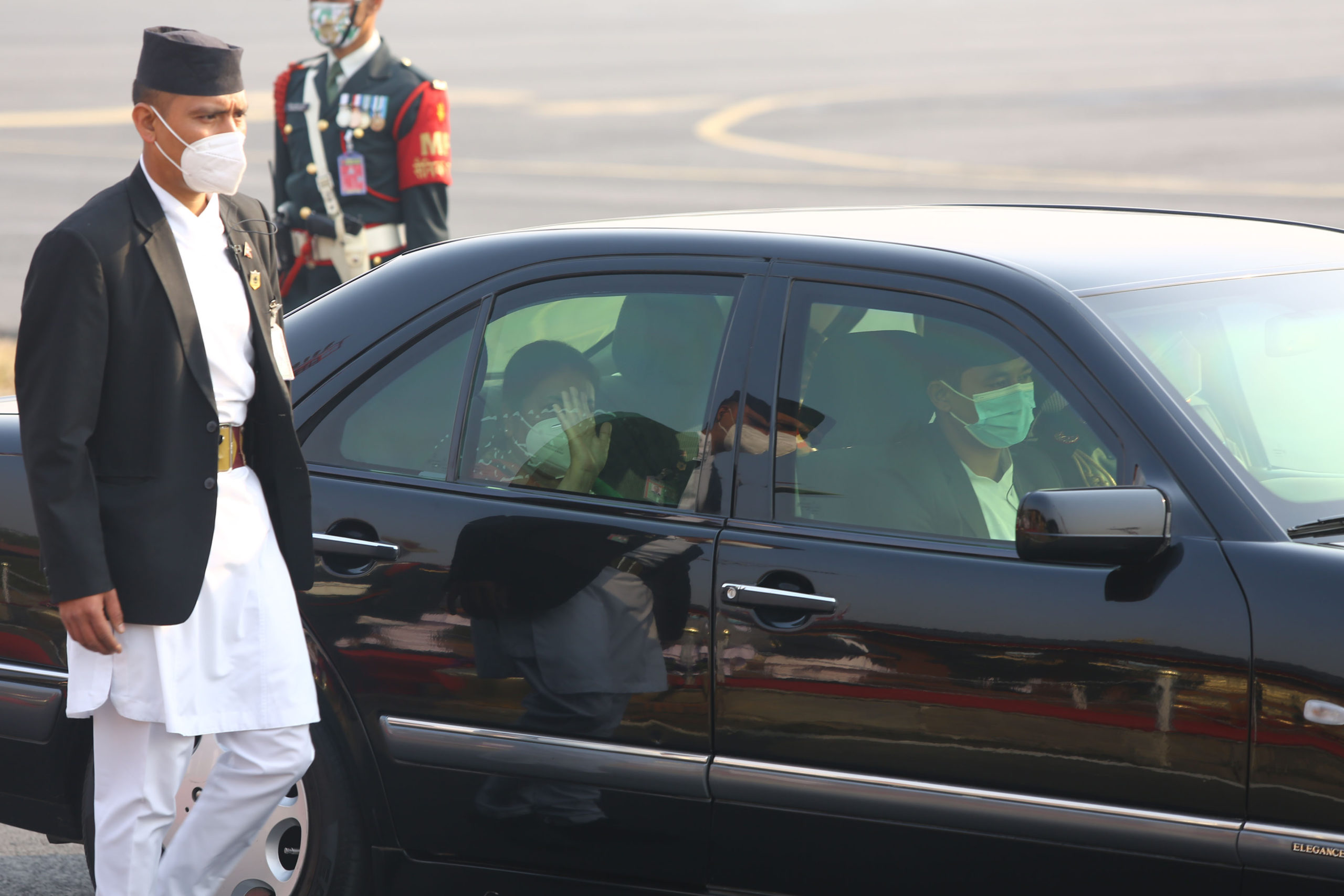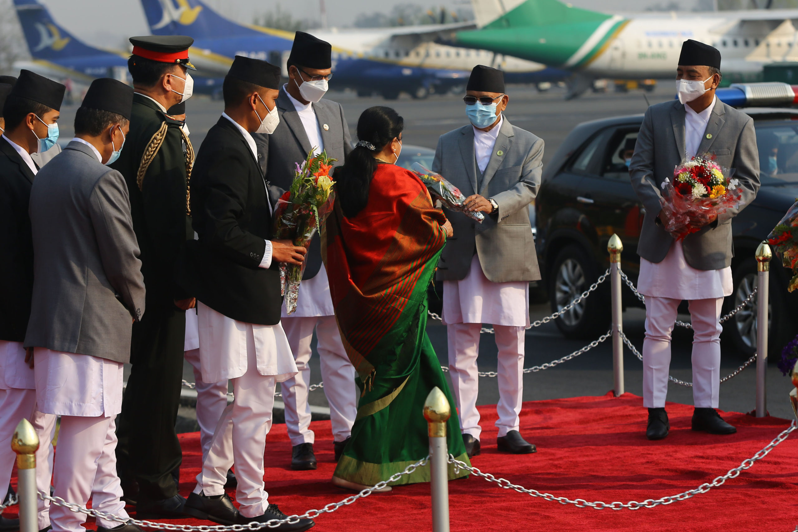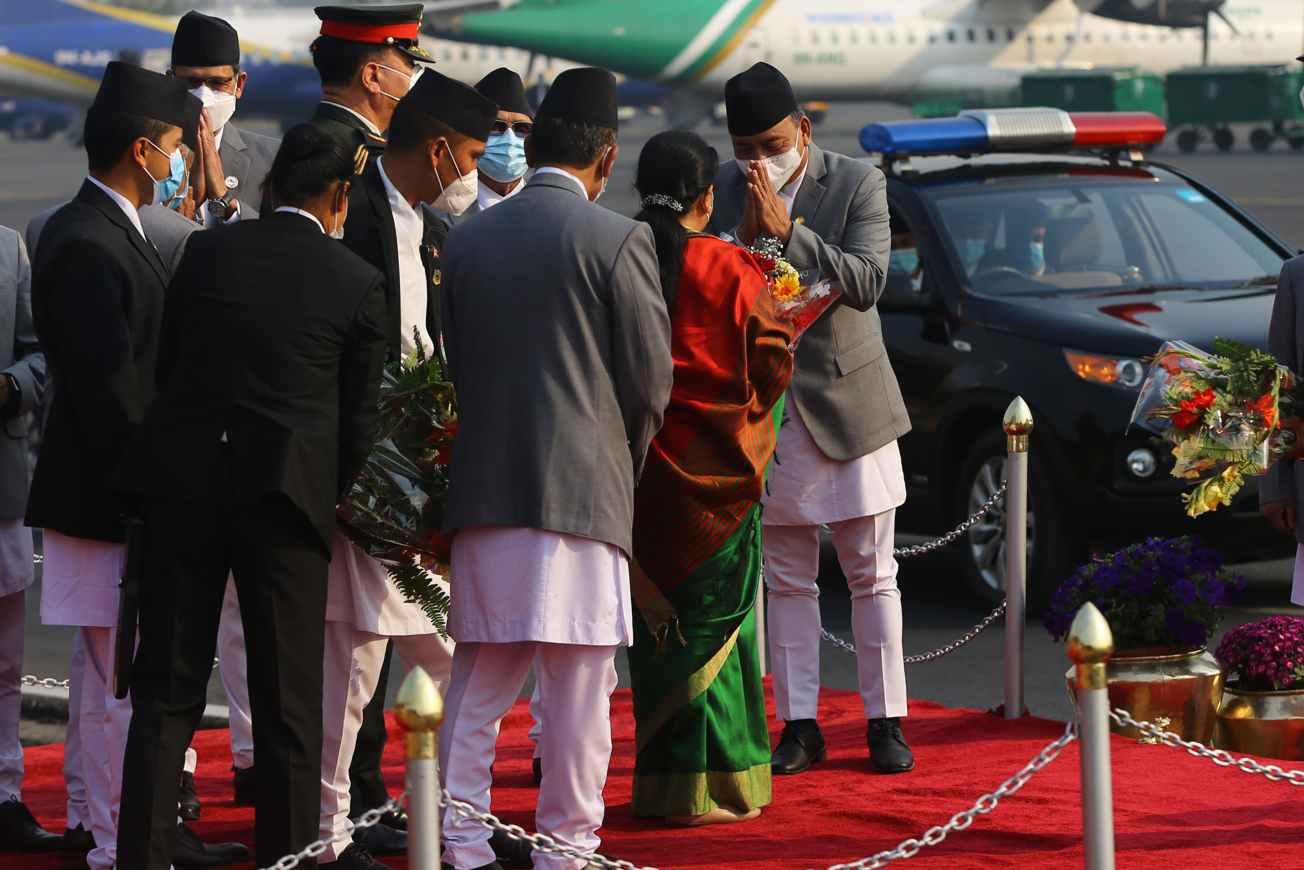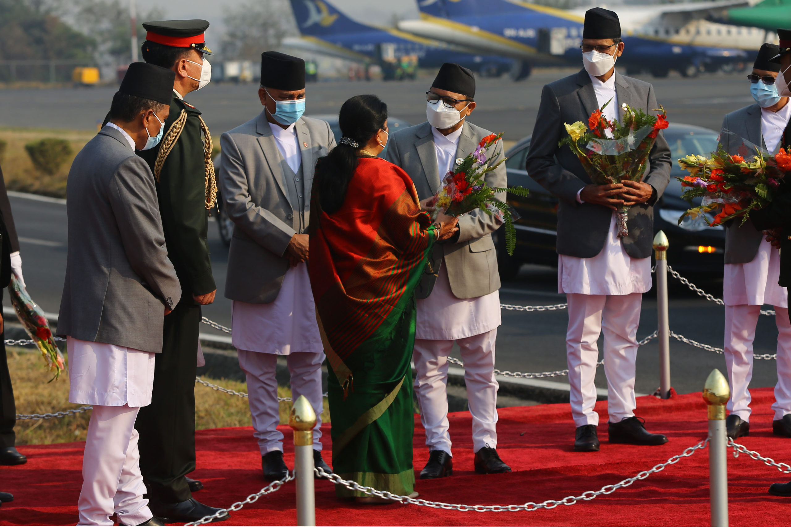 उनलाई त्रिभुवन अन्तर्राष्ट्रिय विमानस्थलको अतिविशिष्ट कक्षमा उपराष्ट्रपति नन्दबहादुर पुन, प्रधानमन्त्री केपी शर्मा ओली, सभामुख अग्निप्रसाद सापकोटा, राष्ट्रियसभाका अध्यक्ष गणेशप्रसाद तिमिल्सिना, उपप्रधानमन्त्री ईश्वर पोखरेल र संविधानसभा अध्यक्ष सुवासचन्द्र नेम्वाङले बिदाइ गरे ।