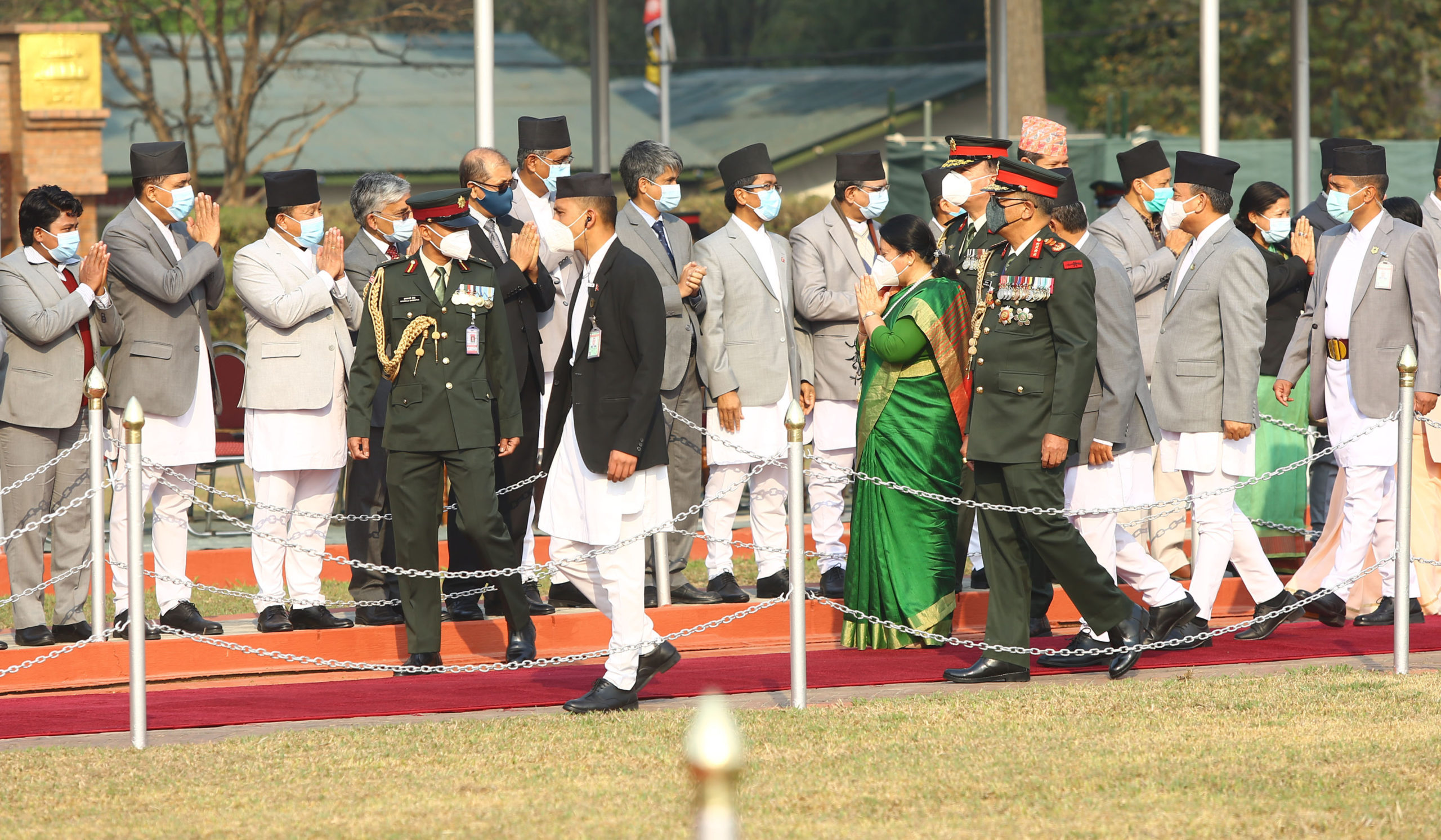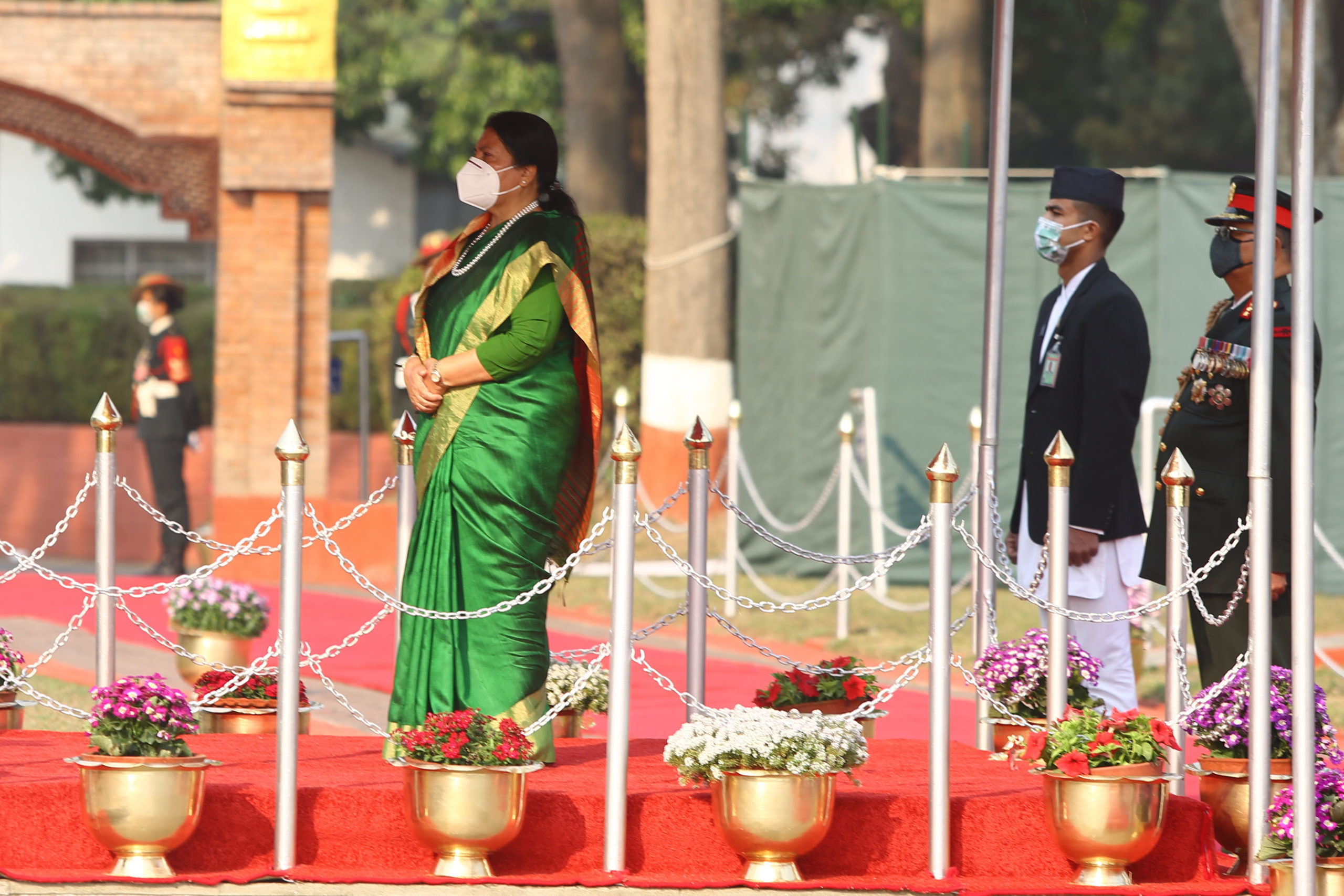 सो अवसरमा मन्त्री, संवैधानिक निकायका प्रमुख, सुरक्षा निकायका प्रमुख, नेपालस्थित विदेशी कूटनीतिक नियोगका प्रतिनिधिलगायत उपस्थित थिए । राष्ट्रपति भण्डारीको सम्मानमा नेपाली सेनाको एक टुकुडीले सम्मानगारत अर्पण गरेको थियो ।