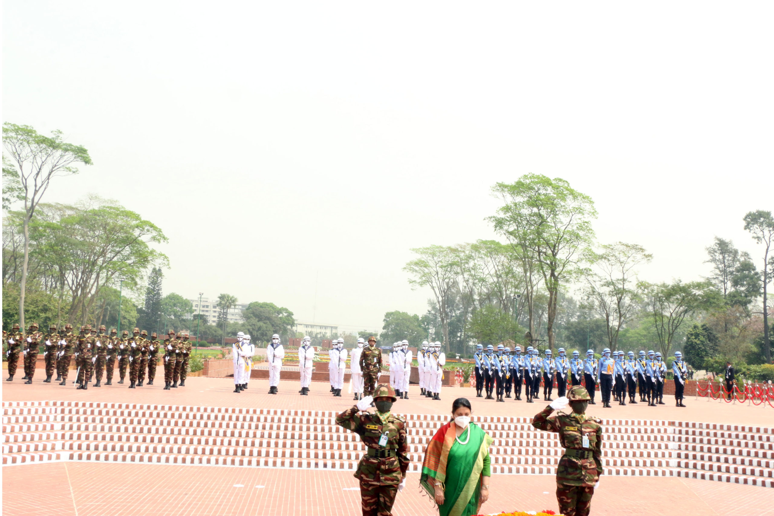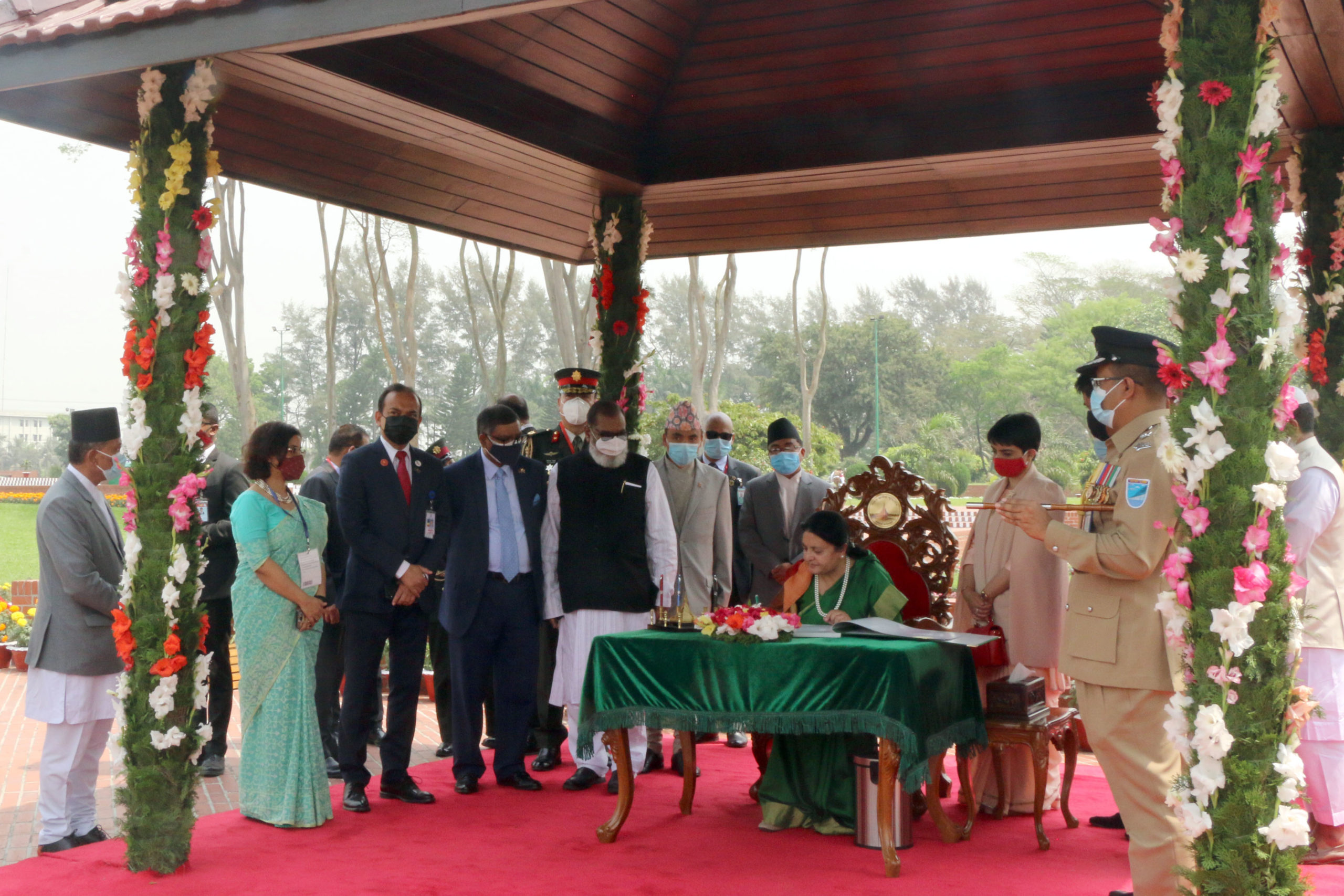 राष्ट्रपति भण्डारीलाई विमानस्थलमा २१ तोपको सलामीसहित ‘गार्ड अफ अनर’ दिइयो । राष्ट्रपति भण्डारीले त्यसपछि यहाँको राष्ट्रिय शहीद स्मृति, सभारमा शहीदप्रति श्रद्धाञ्जलि अर्पण गरिन् । त्यहाँ उनले वृक्षरोपण पनि गरिन । राष्ट्रपति भण्डारी हाल आवासका लागि प्रबन्ध गरिएको इन्टरकन्टिनेन्टल होटेलमा पुगेकी छन् ।