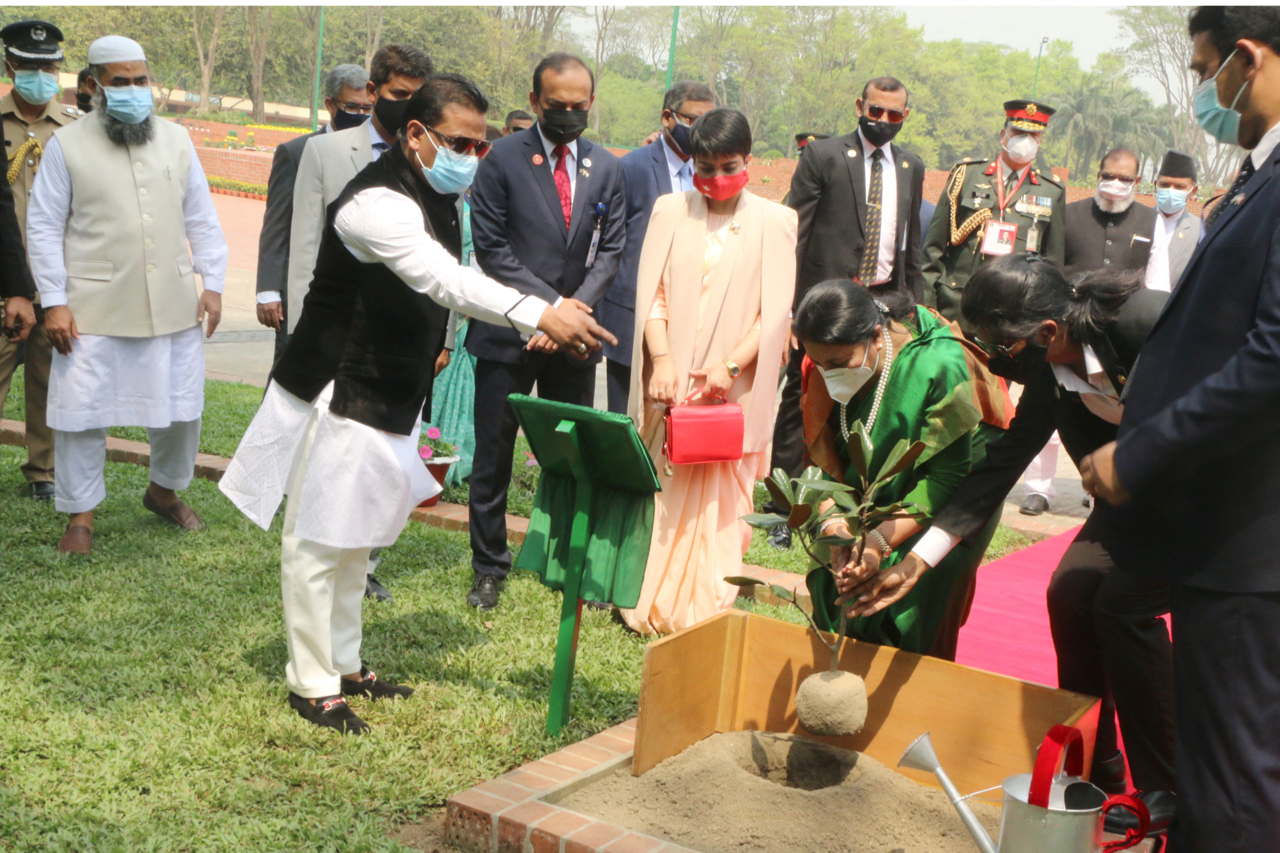 बङ्गलादेशका राष्ट्रपिता शेख मुजिबुर रहमानको जन्मशताब्दी विशेष समारोहका अवसरमा बङ्गलादेशी राष्ट्रपति मोहम्मद अब्दुल हमिदका मैत्रीपूर्ण निमन्त्रणामा राष्ट्रपति भण्डारी बिहान स्थानीय समयानुसार १० बजे ढाकास्थित हजरत सहजलाल अन्तरराष्ट्रिय विमानस्थलमा आइपुगेकी हुन् ।
