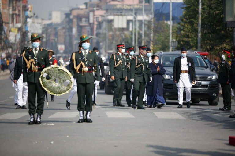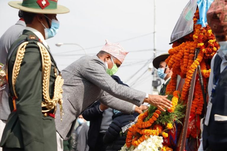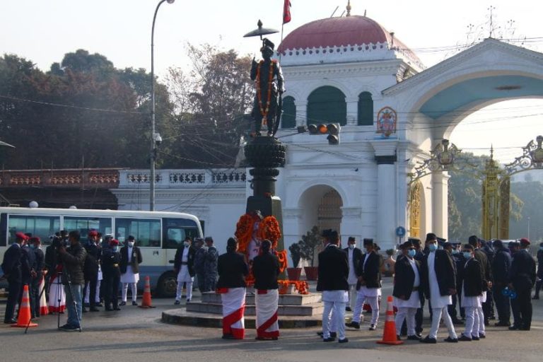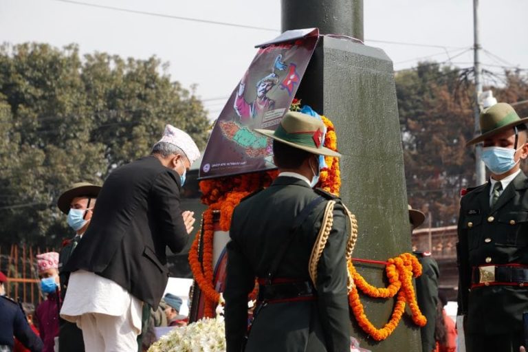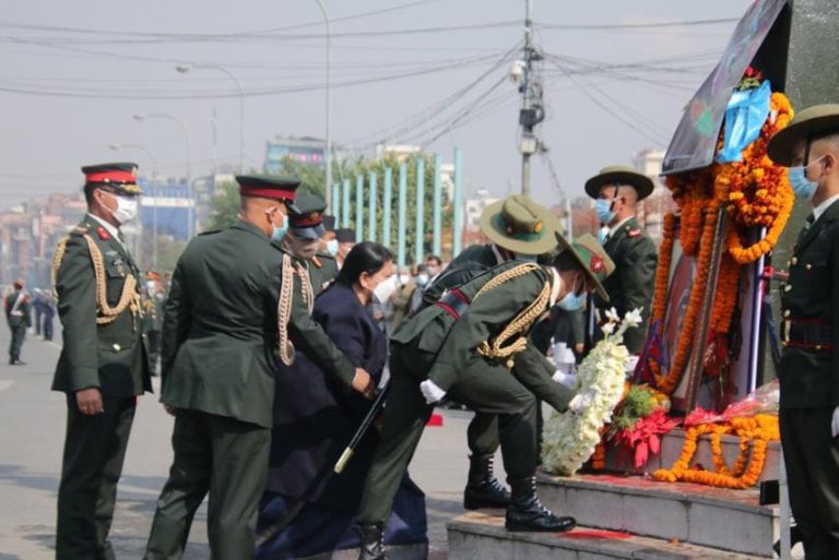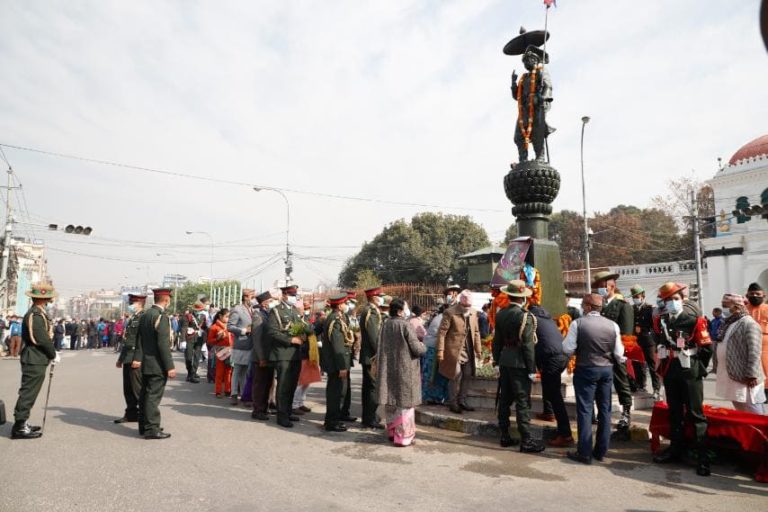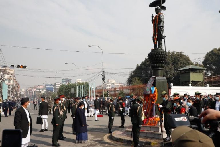 काठमाण्डु – राष्ट्रपति विद्यादेवी भण्डारीले पृथ्वीजयन्तीको अवसरमा मंगलबार पृथ्वीनारायण शाहको शालिकमा माल्यार्पण गरेकी छन् ।