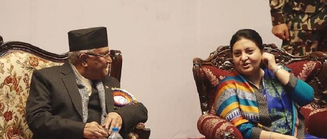 संसद विघटनविरुद्धको मुद्दा सर्वोच्च अदालतमा बहस भइरहेका बेला प्रधानमन्त्री अोलीले राष्ट्रपतिलाई भेटेका हुन् । प्रधानमन्त्री अोलीले गत पुस ५ गते प्रतिनिधिसभा विघटन गरेर मध्यावधी निर्वाचनमा जाने निर्णय गरेका थिए । त्यसयता सरकारको चौतर्फी विरोध भइरहेको छ ।
