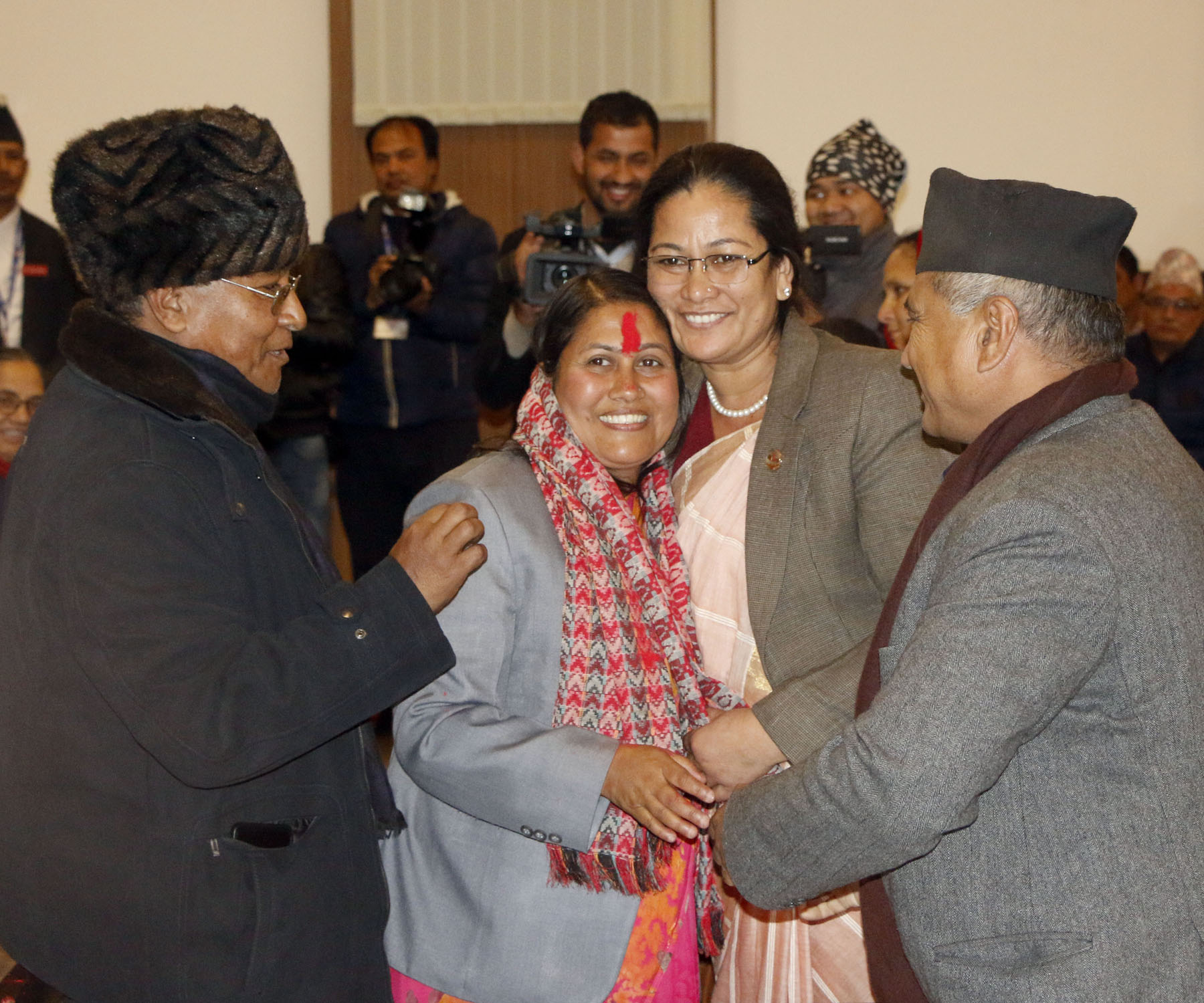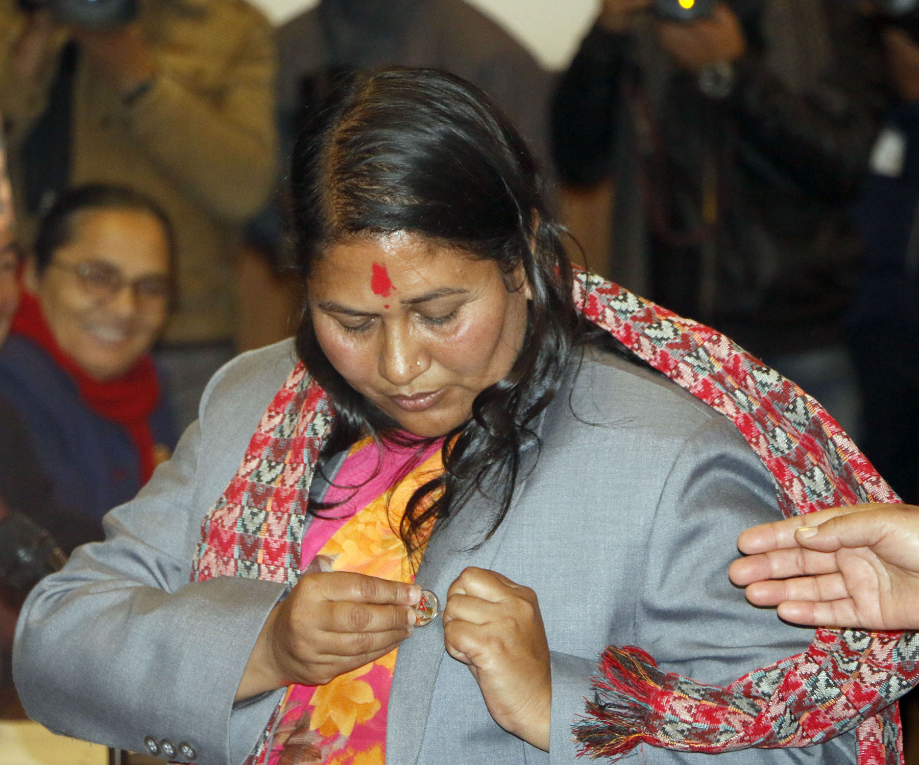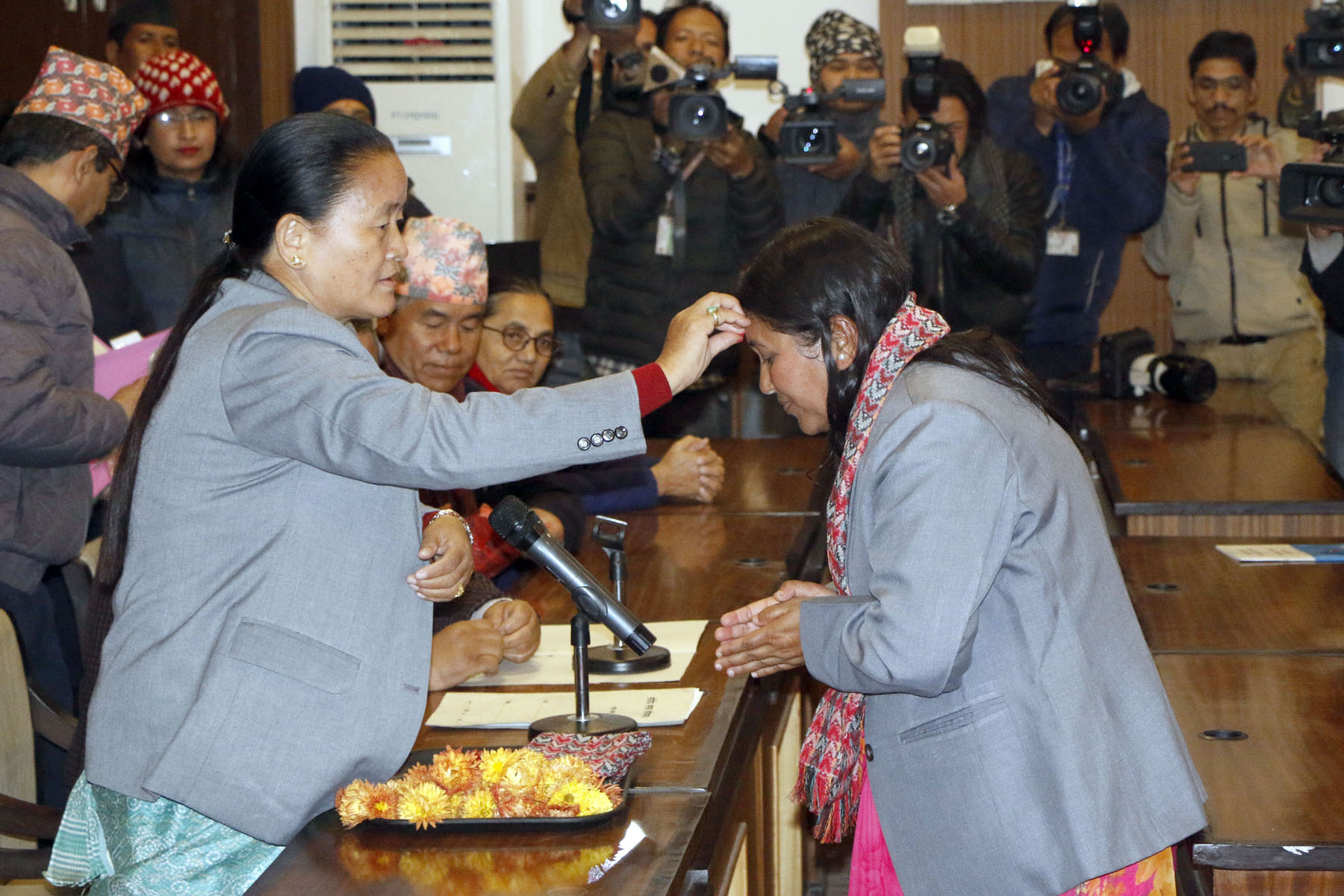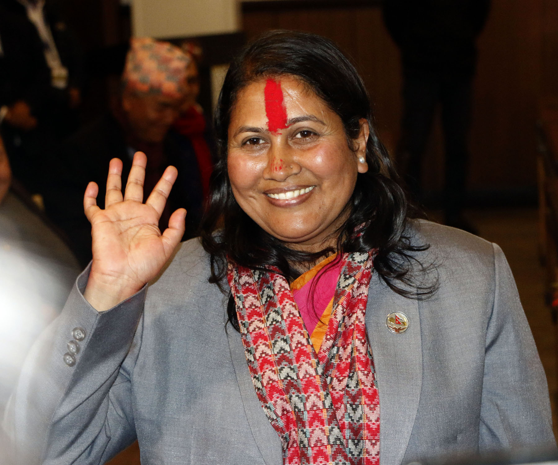 काठमाडौं – कास्की क्षेत्र नम्बर २ बाट निर्वा्चित सांसद विद्या भट्टराईलाई पद तथा गोपनीयताको शपथ ग्रहण गरेकी छन् । भट्टराई यही मंसिर १४ गते सम्पन्न उपनिर्वाचनबाट प्रतिनिधि सभा सदस्य पदमा निर्वा्चित भएकी थिइन् ।