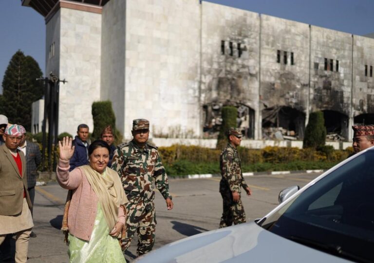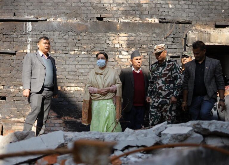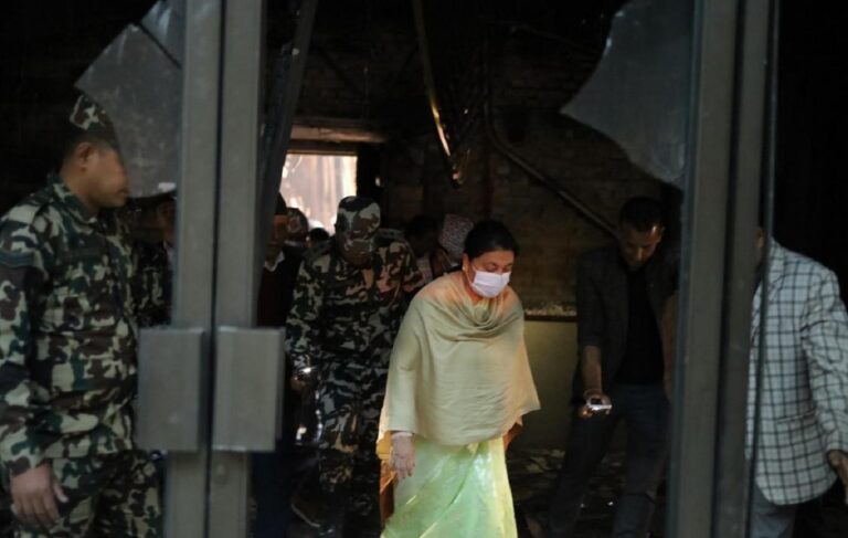 जेन–जीको आगजनीबाट खण्डहर बनेको भवन अवलोकनका लागि भण्डारी बिहीबार संसद भवन पुगेकी हुन् ।