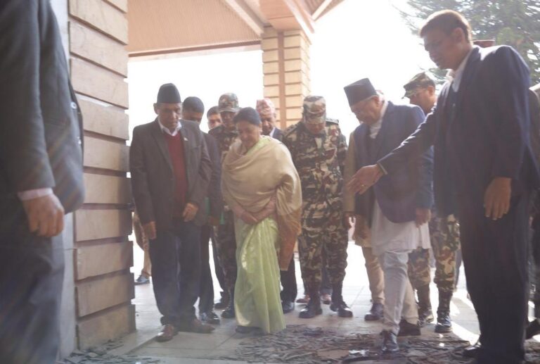 काठमाण्डु – भदौ २३ र २४ गते जेन–जी आन्दोलनका क्रममा आगजनी र तोडफोडपछि ध्वस्त संसद भवनको पूर्वराष्ट्रपति विद्यादेवी भण्डारीले अवलोकन गरेकी छन् ।