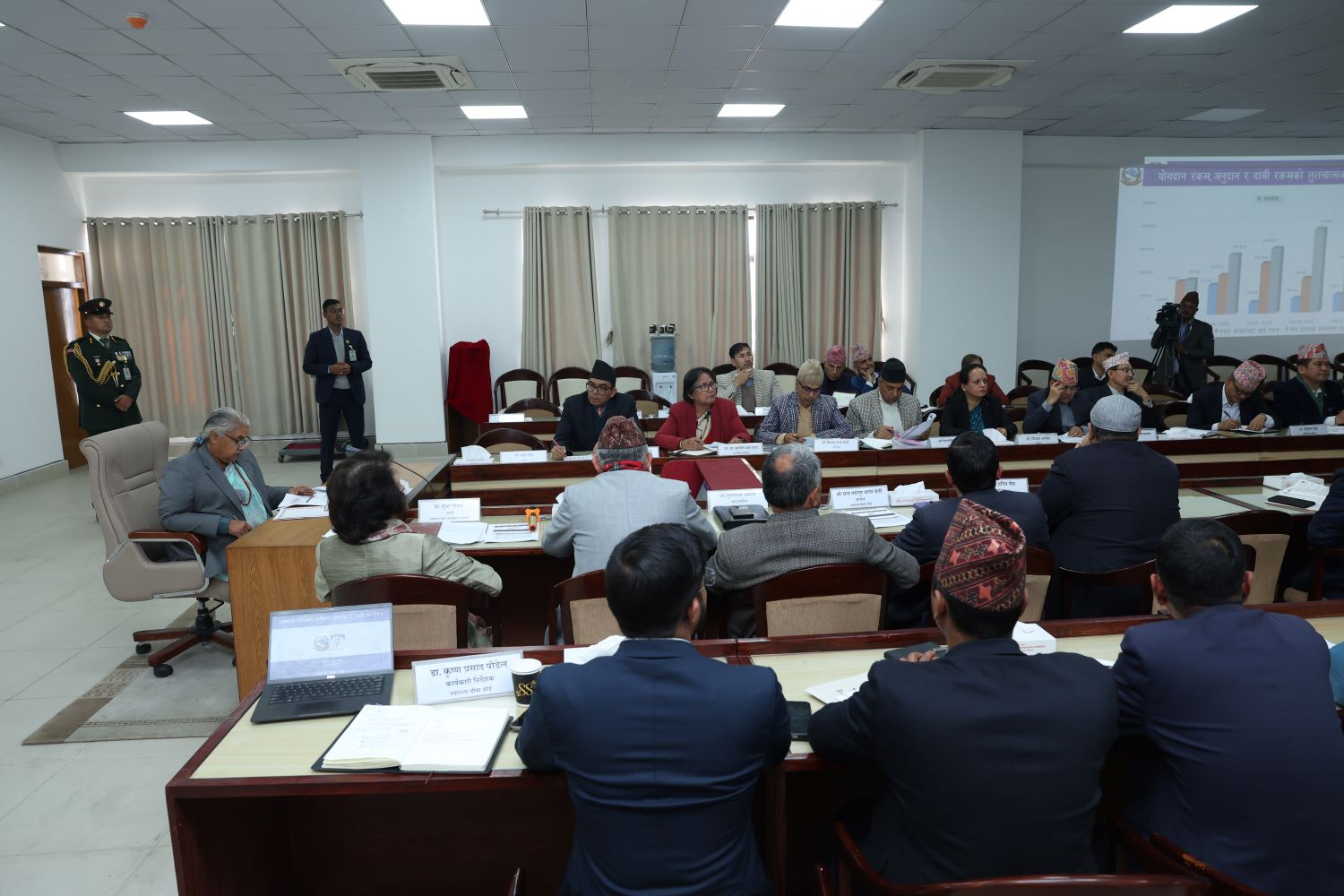 उनले भनिन्, ‘पैसा गईरहेको छ, जनताले उपचार पनि पाएको छैन । यो अवस्थालाई नियन्त्रण गर्नुपर्छ । अब के गर्ने गर्नुपर्छ किनभने जनताले ३५०० तिरि रहेको छ सरकारले सित्तै खाएको जस्तो भई रहेको छ । यसमा के गर्ने हो सोच्नुपर्छ । यसबारे छलफल गरेर ऋण गरेर हुन्छ कि के गरेर हुन्छ जसरी भएपनि गर्नै पर्छ । हिजो कुन हिसाबबाट यो काम भयो तर जनताले सरकार नै देख्छ हिजोको र आजको सरकारले जनतालाई मतलब हुँदैन ।’